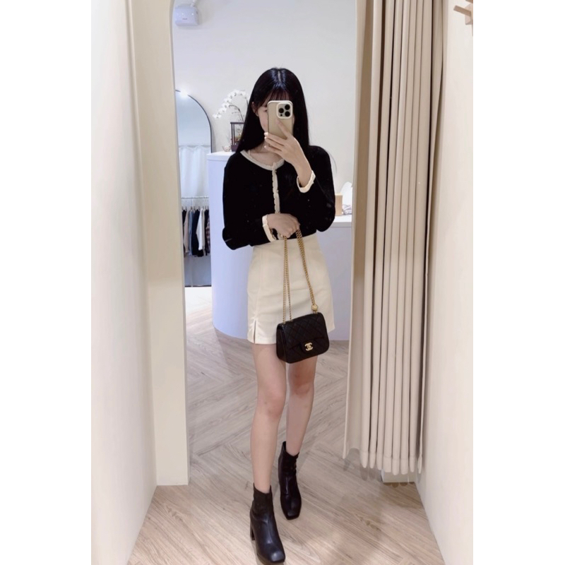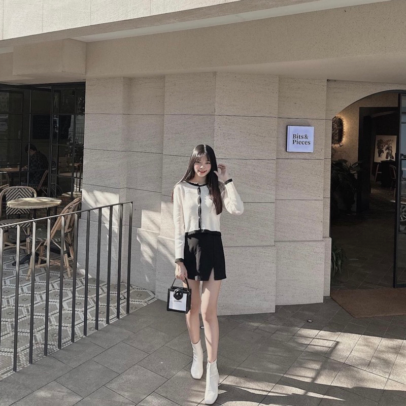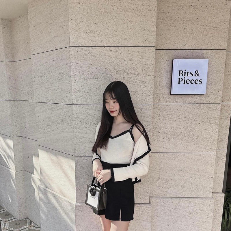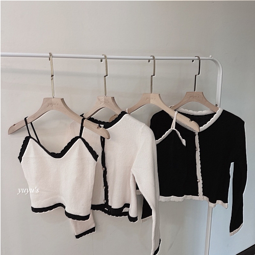 #氣質小香風薄針織花邊領兩件式套裝