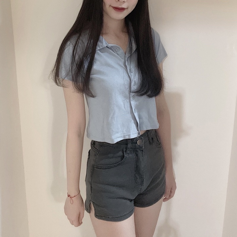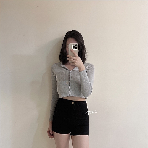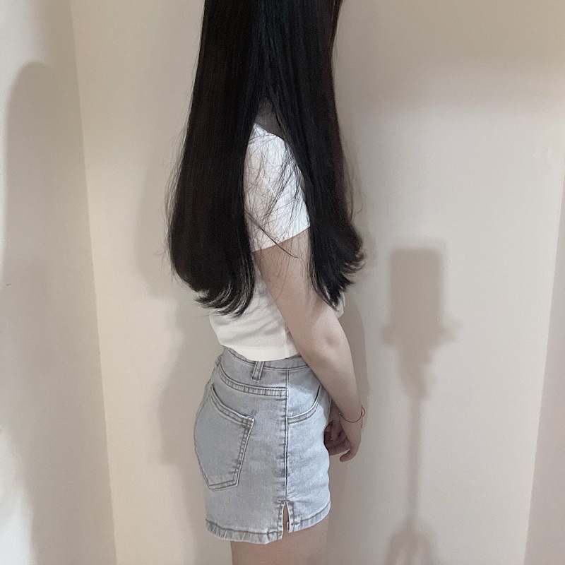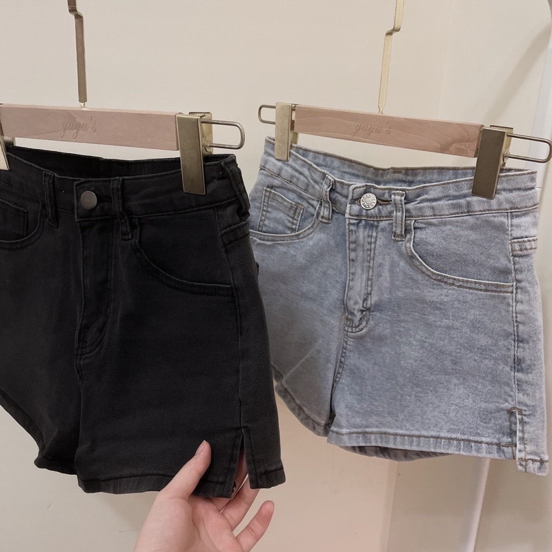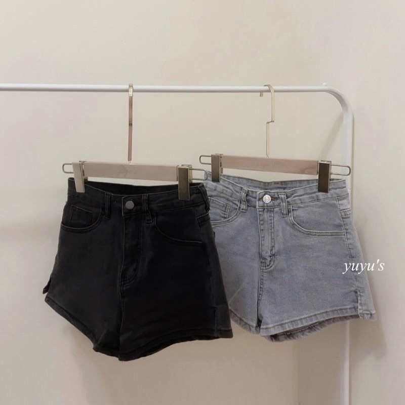 yuyu’s自訂款 #版型偏小開衩高腰彈性牛仔短褲