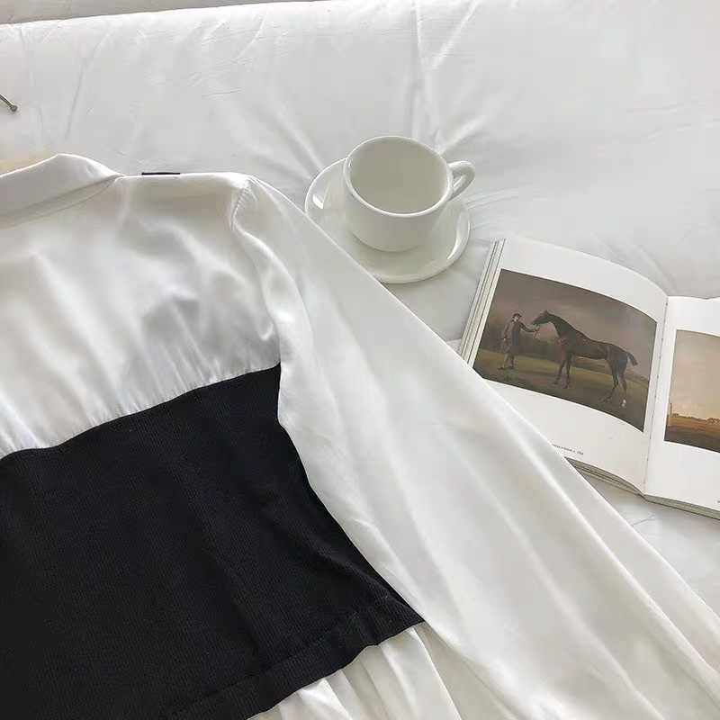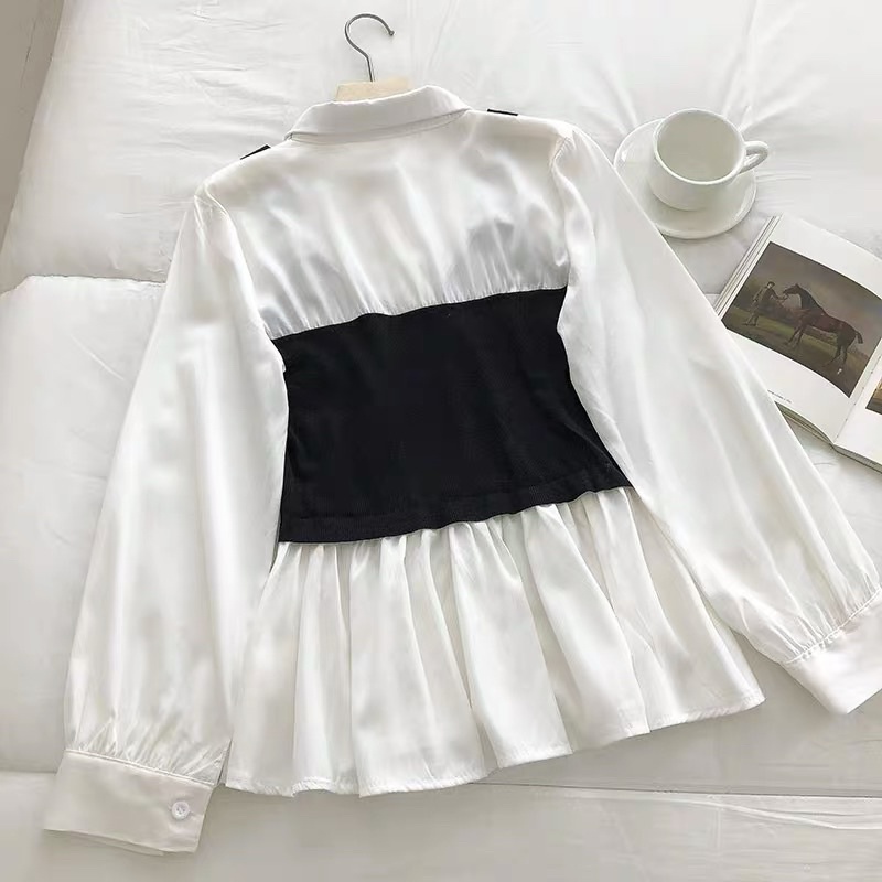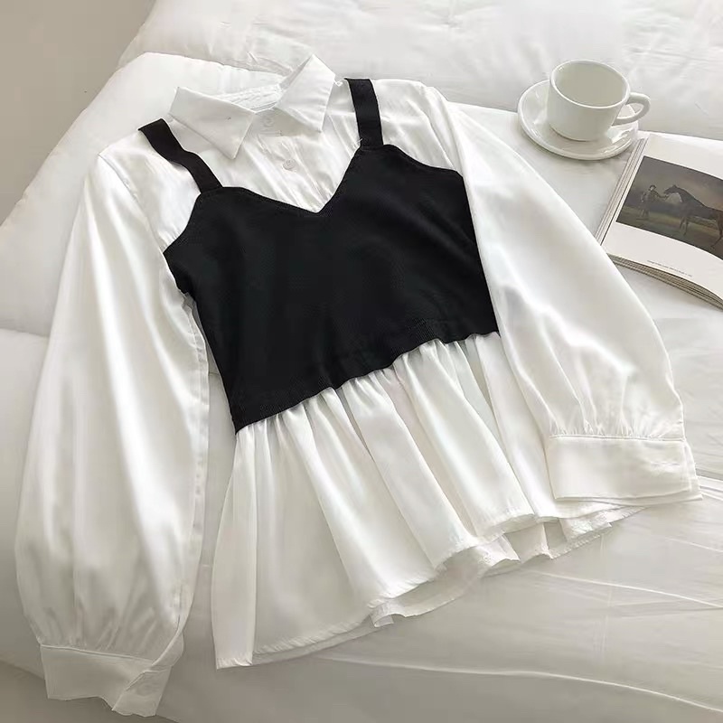 #柔軟澎袖假兩件背心襯衫