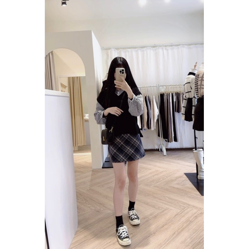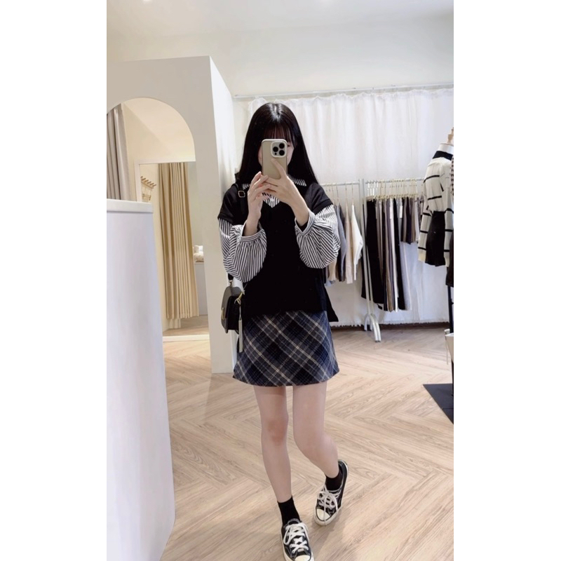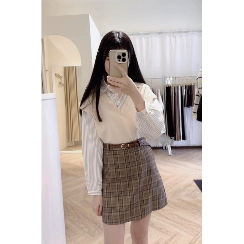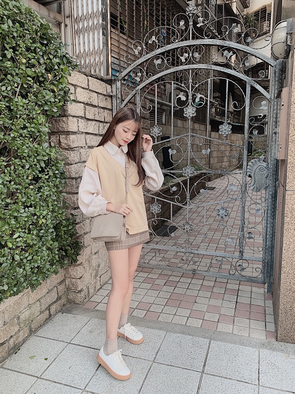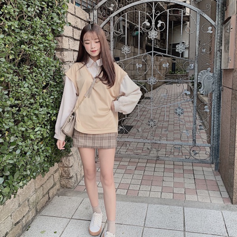#學院風假兩件澎袖襯衫