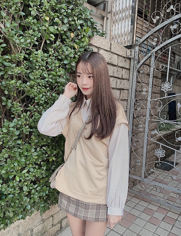 假兩件背心是薄針織材質 袖子是襯衫布料