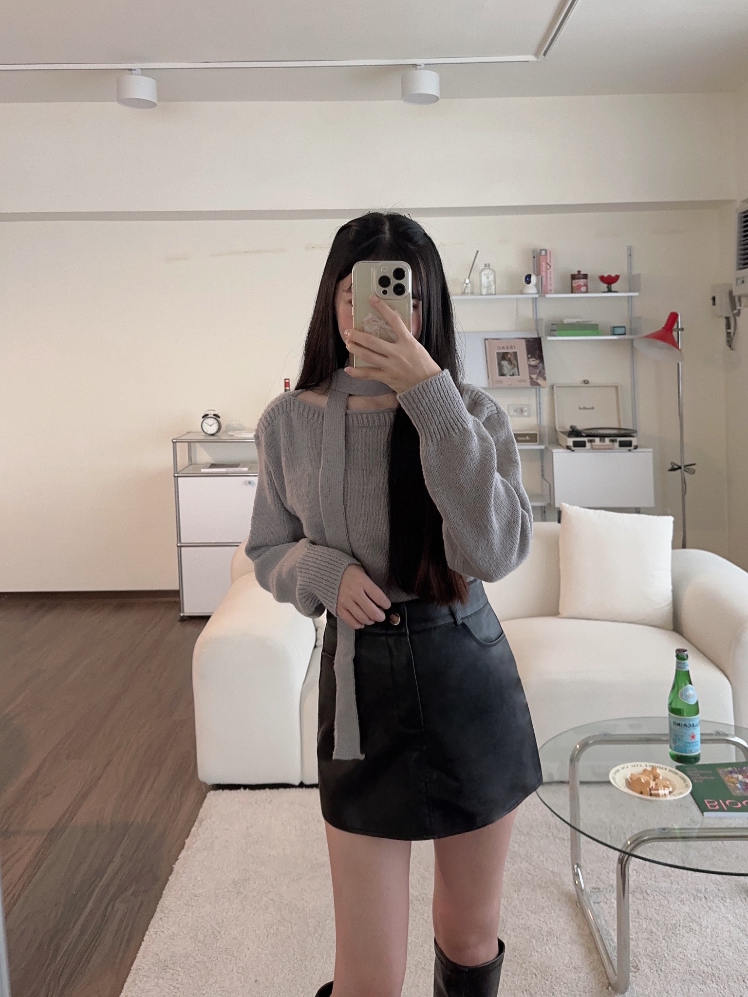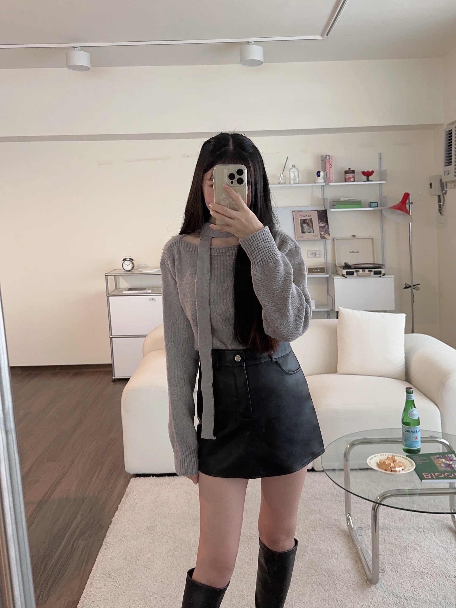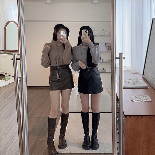 #繞脖一字圓領針織毛衣