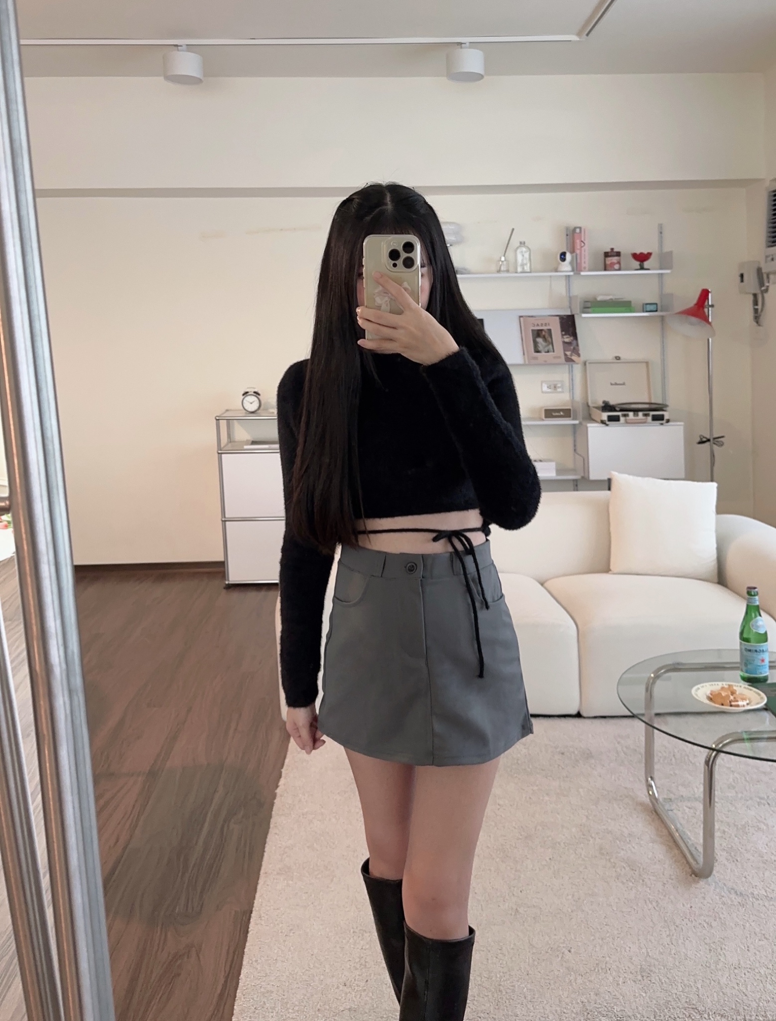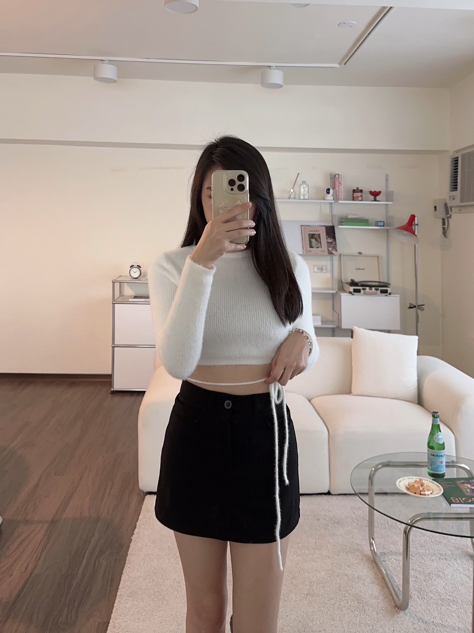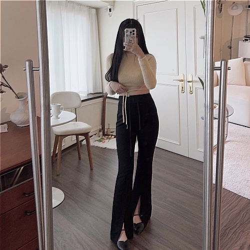 #綁帶水貂絨短版修身毛衣