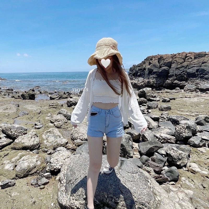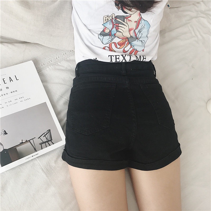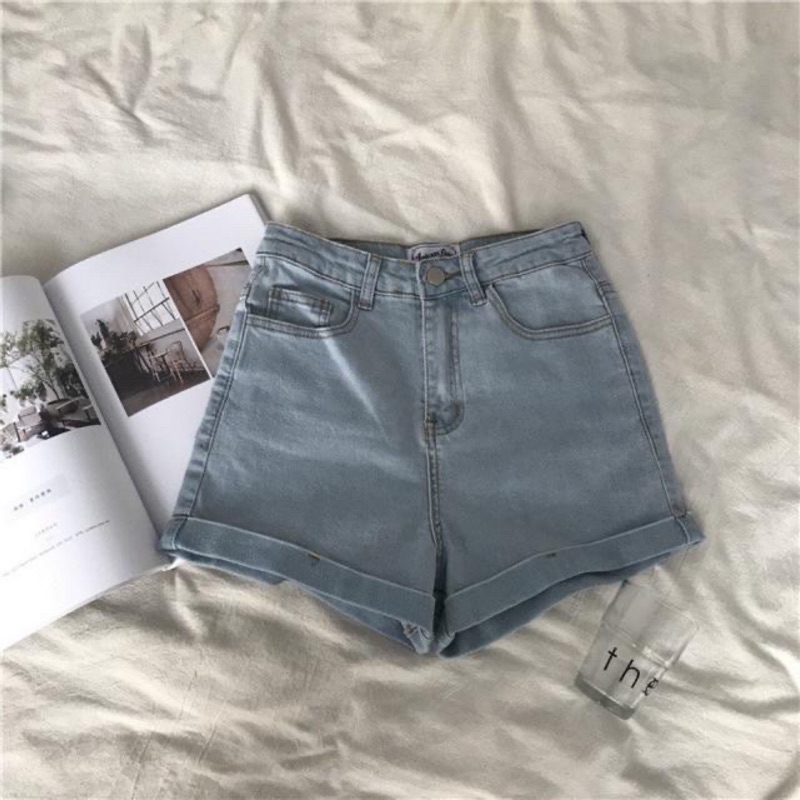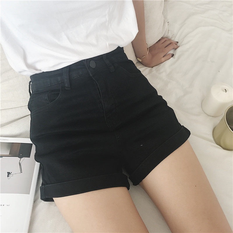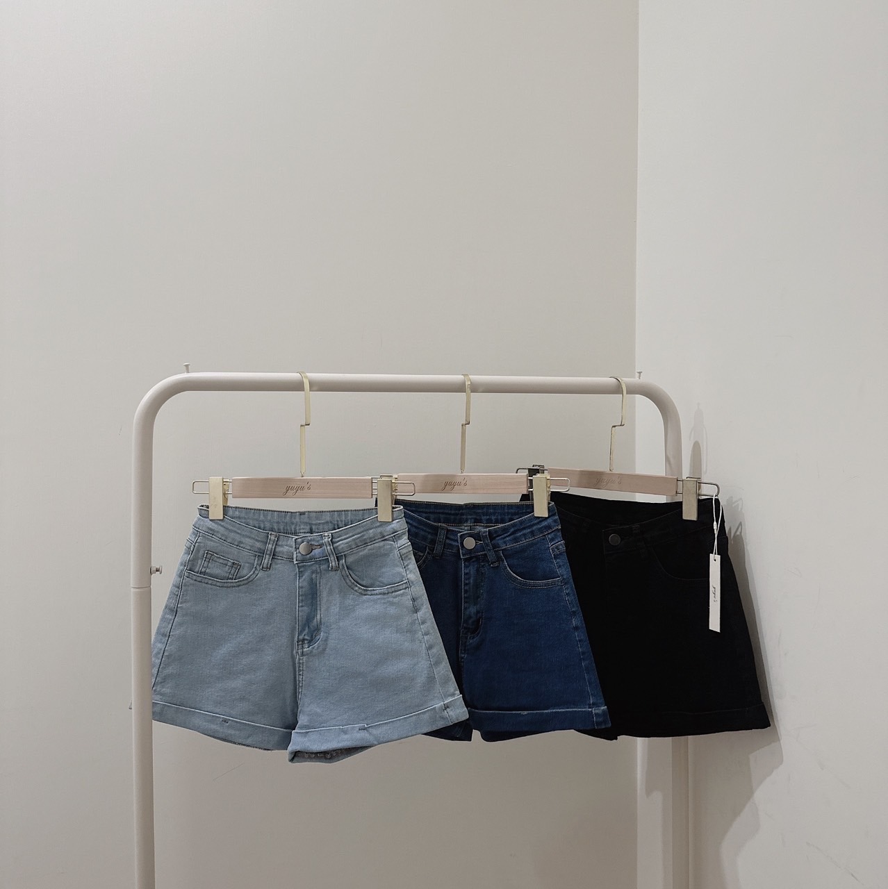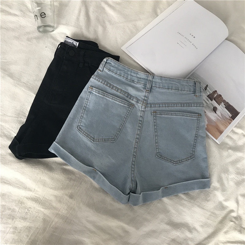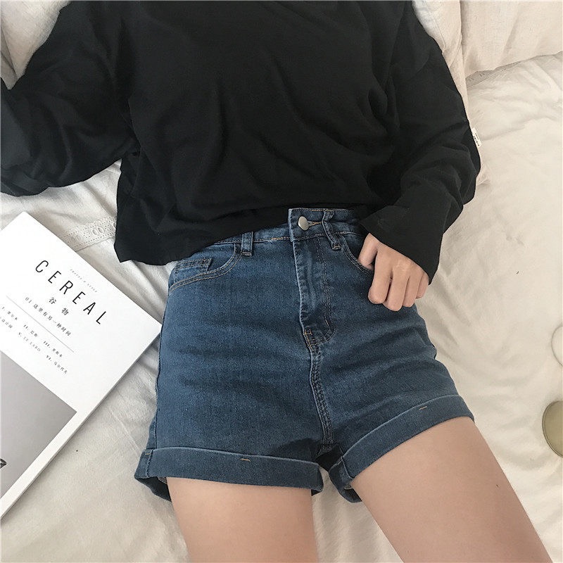 #版型偏小顯瘦單釦高腰彈性牛仔短褲
