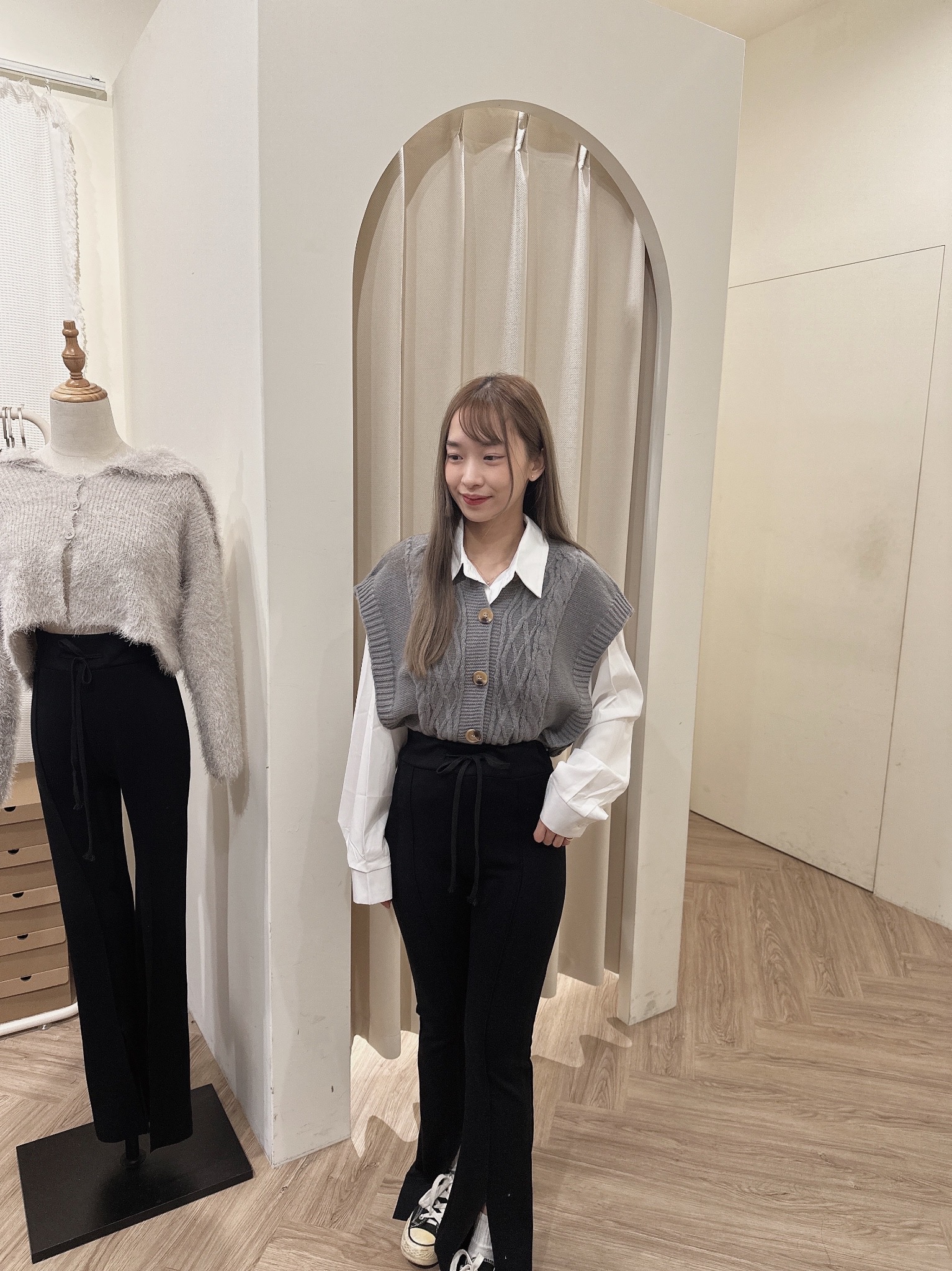 # 圓領寬鬆短版麻花背心