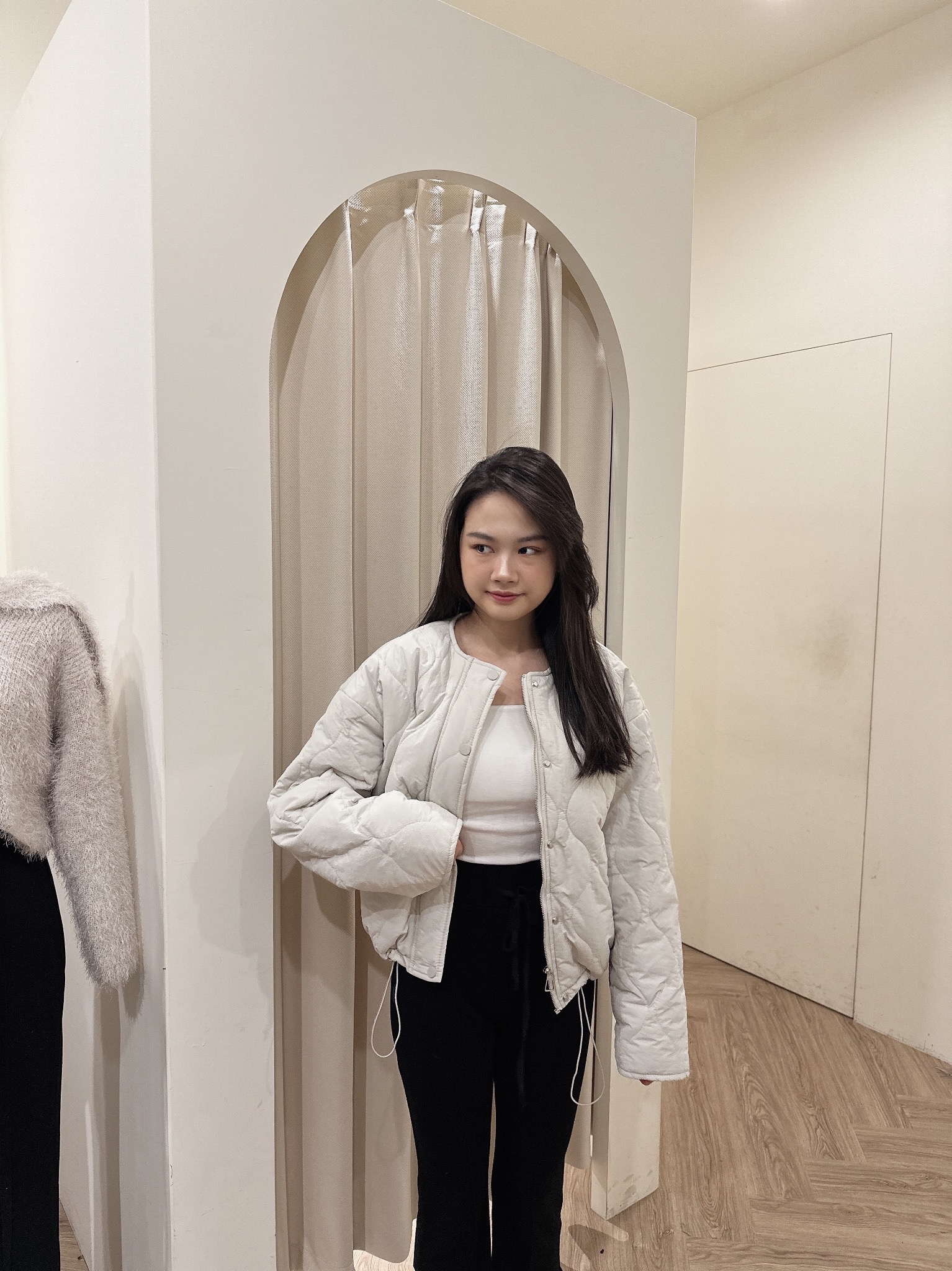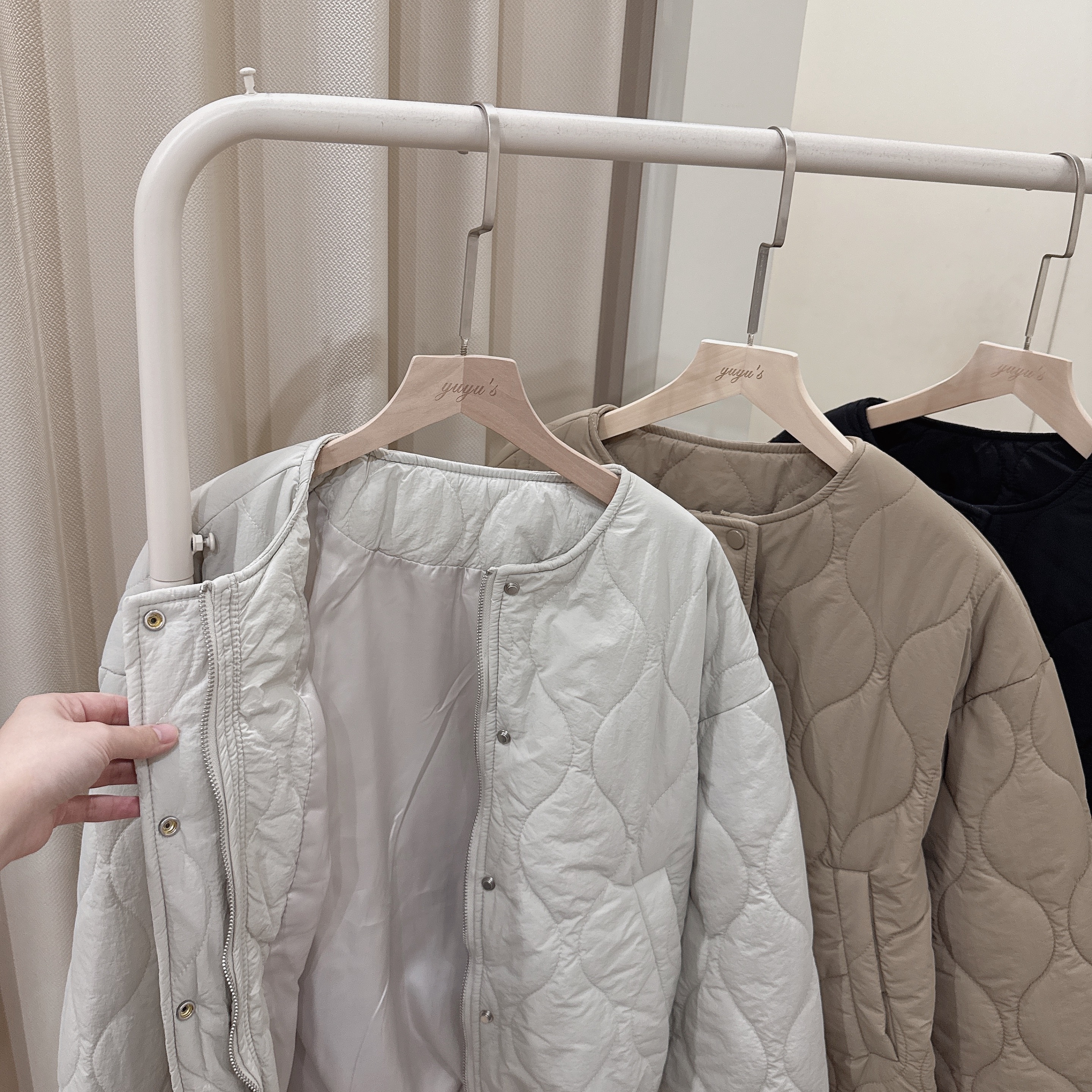 今年很流行的菱格夾棉厚外套