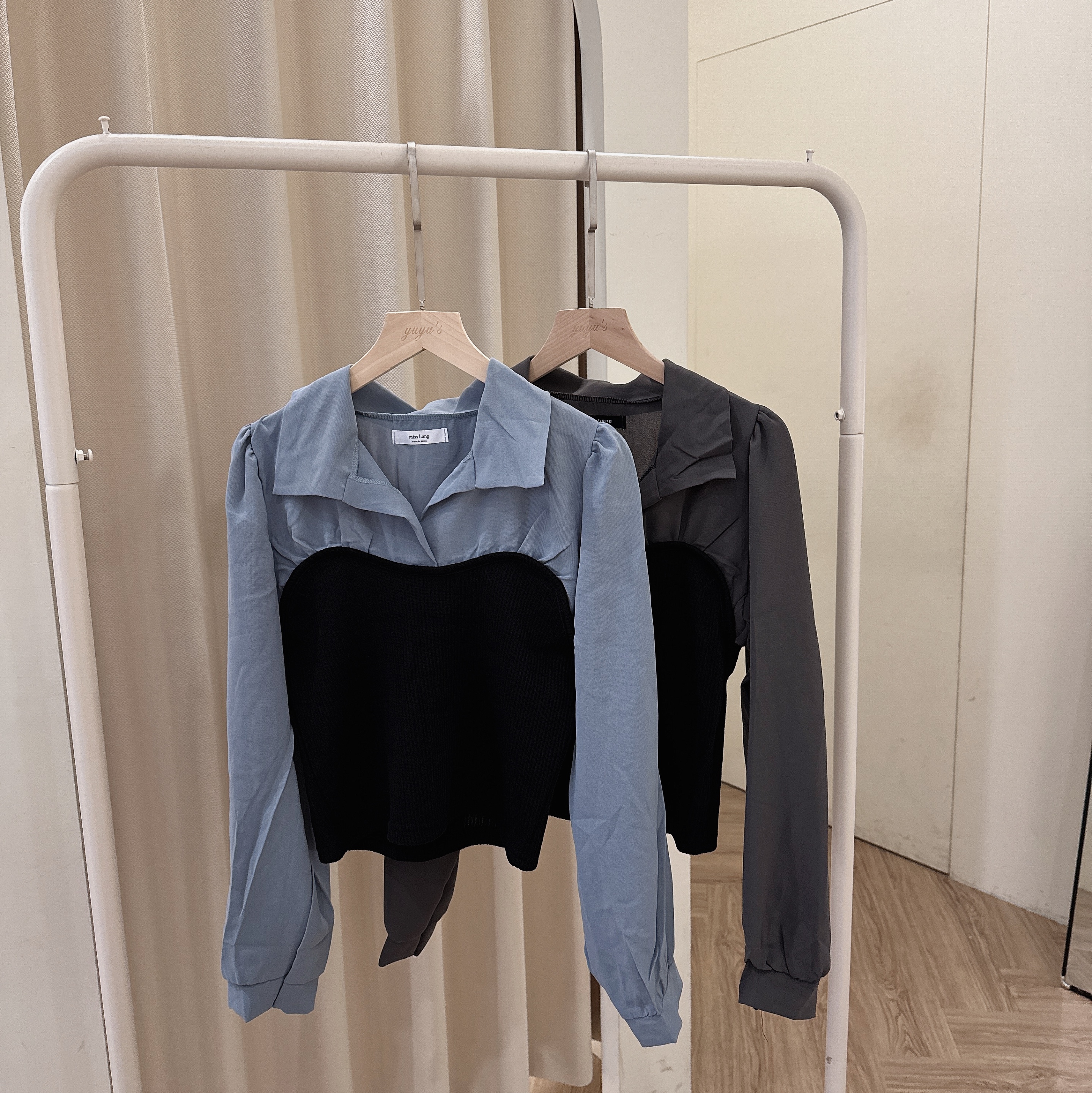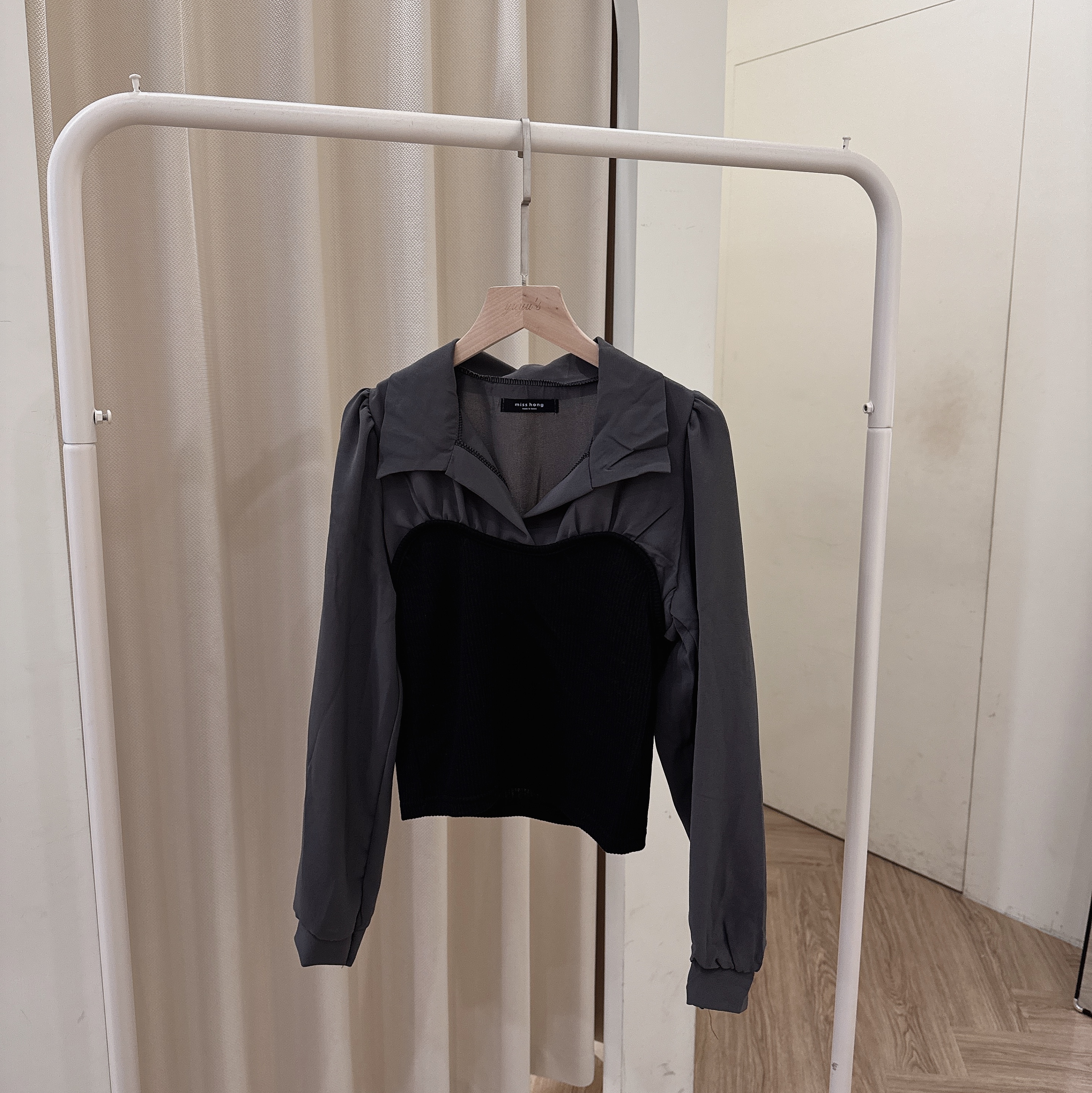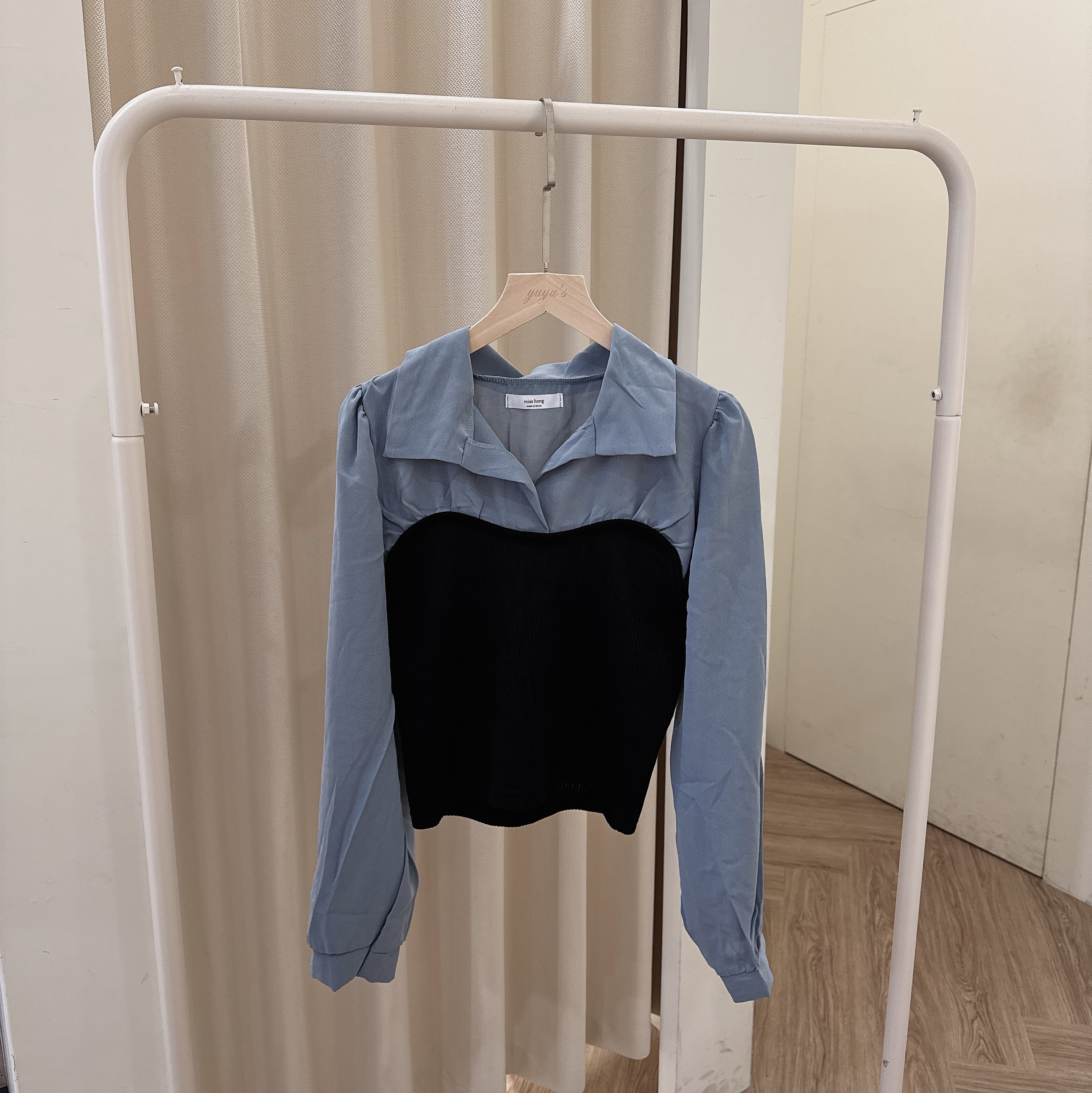 | #12雪紡拼接翻領短 | 霧藍(F) | 少量現貨 |