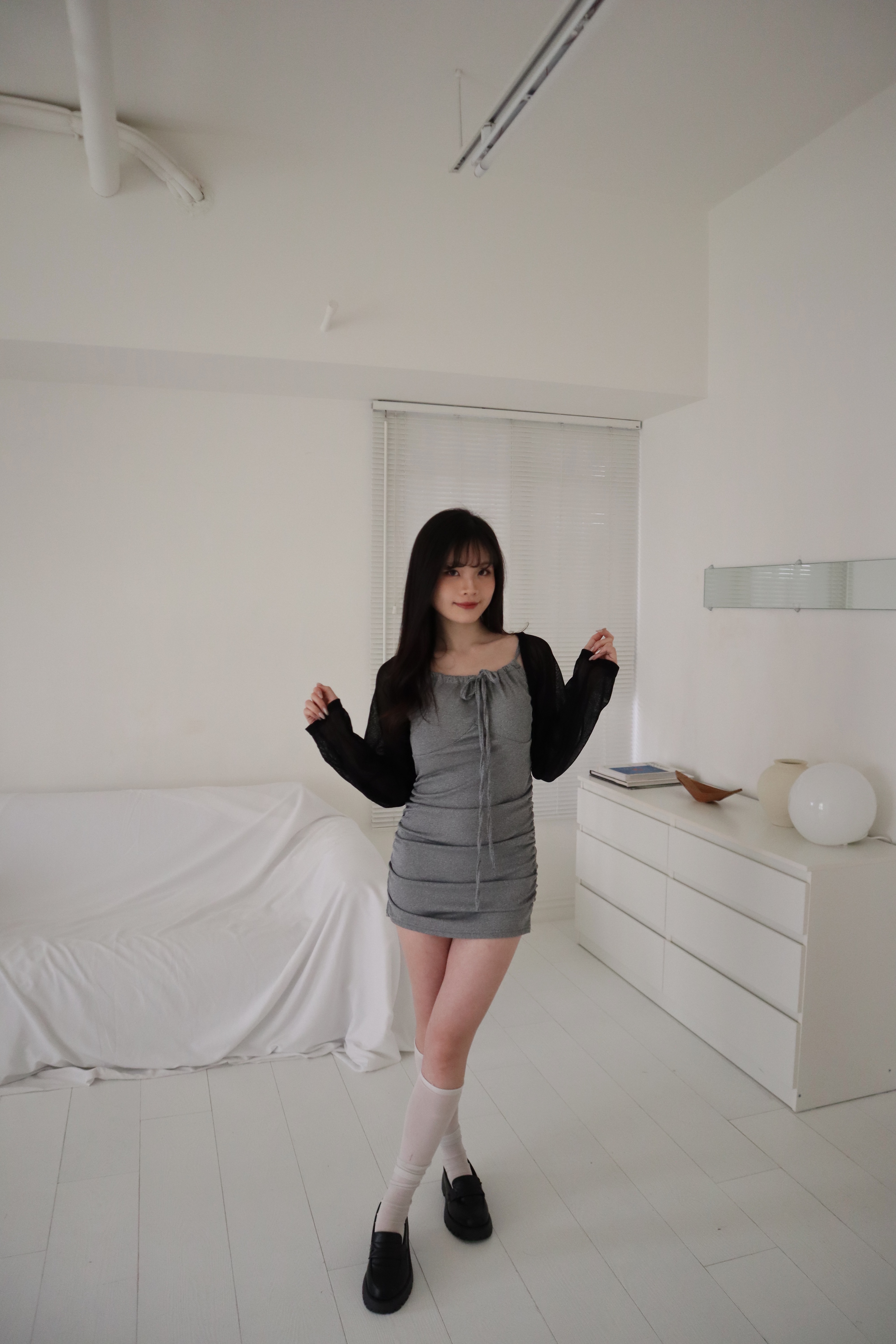 細肩帶+側抓皺包臀設計很顯身材.ᐟ