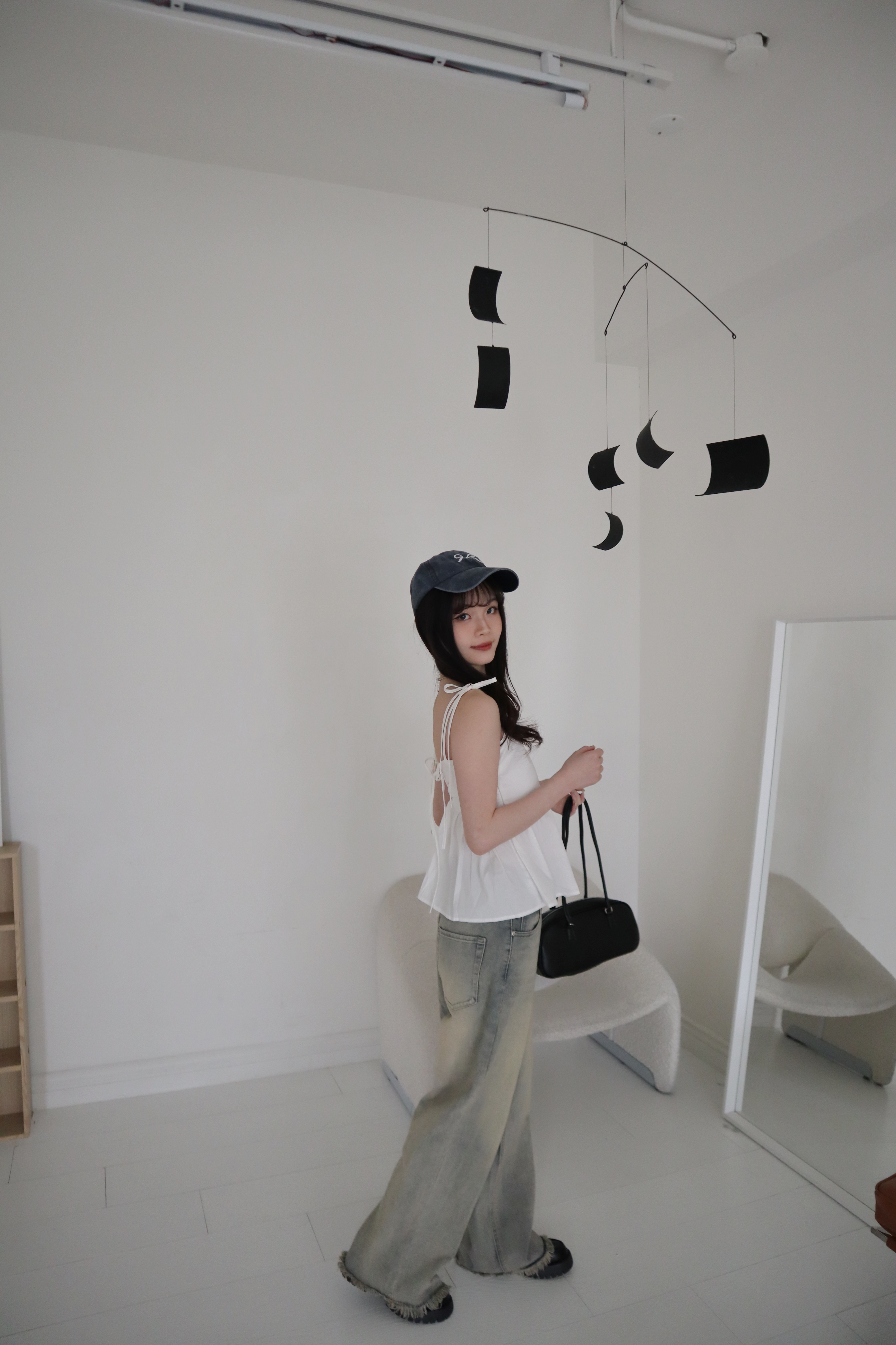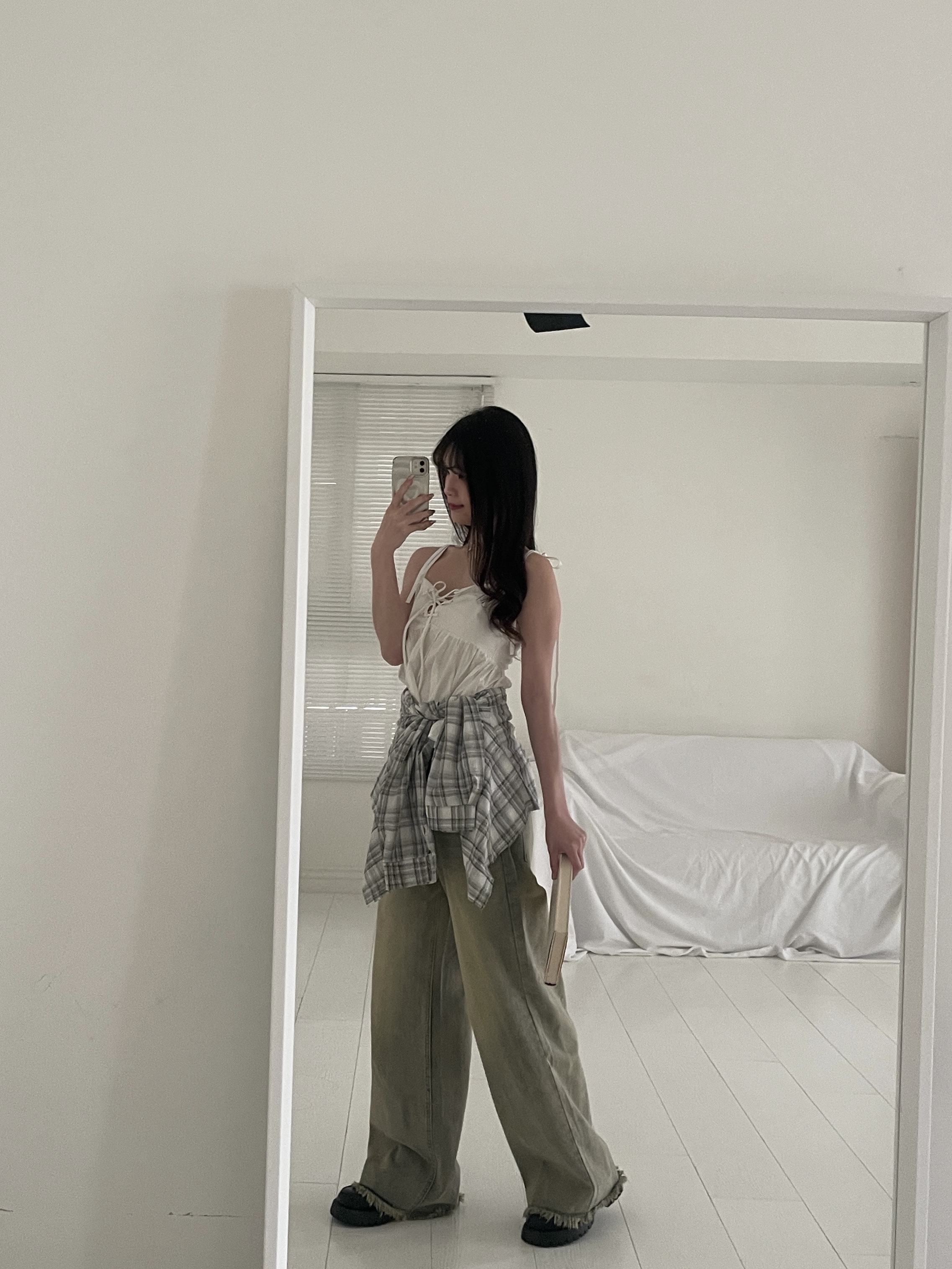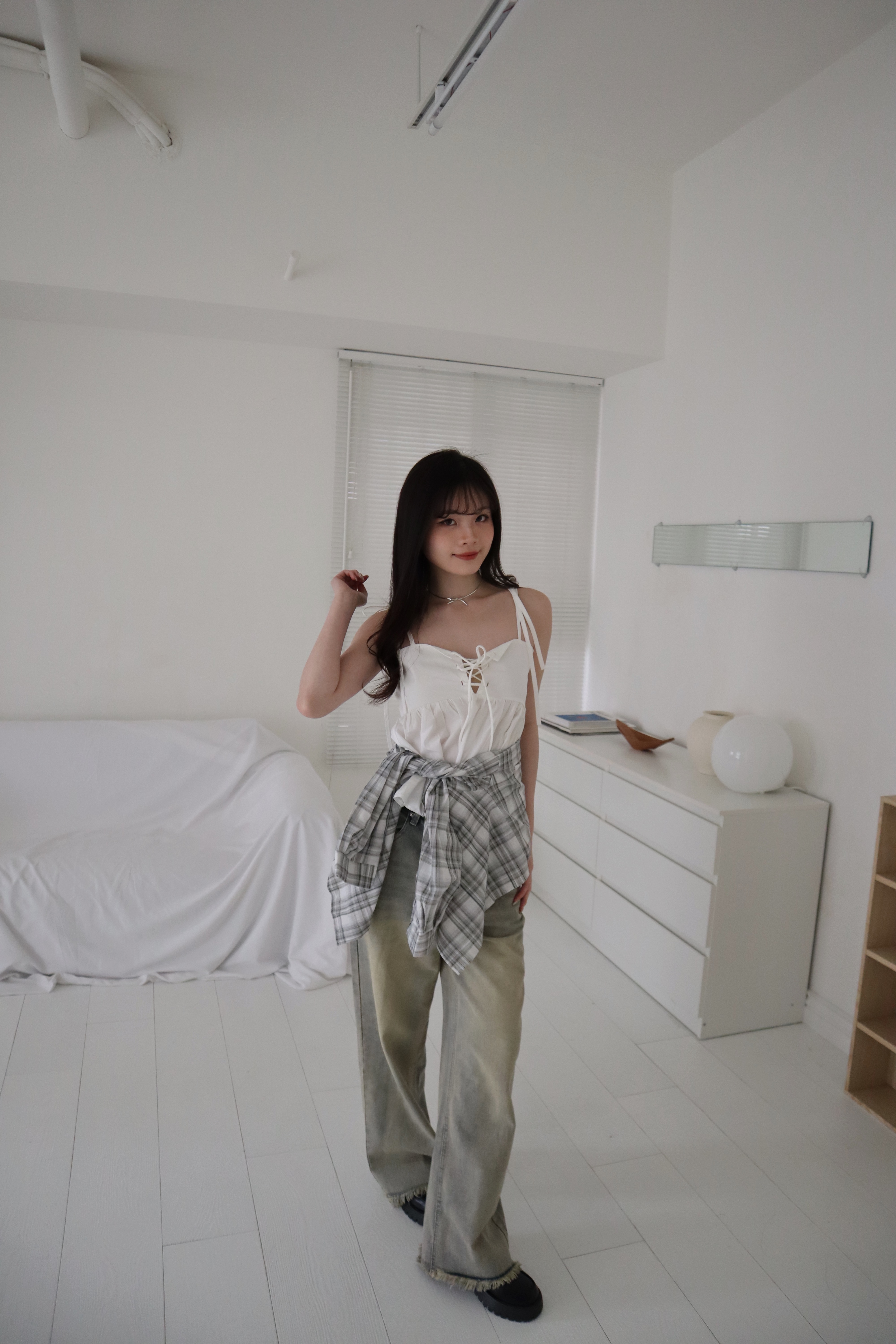 # 交叉綁帶荷葉邊細肩背心