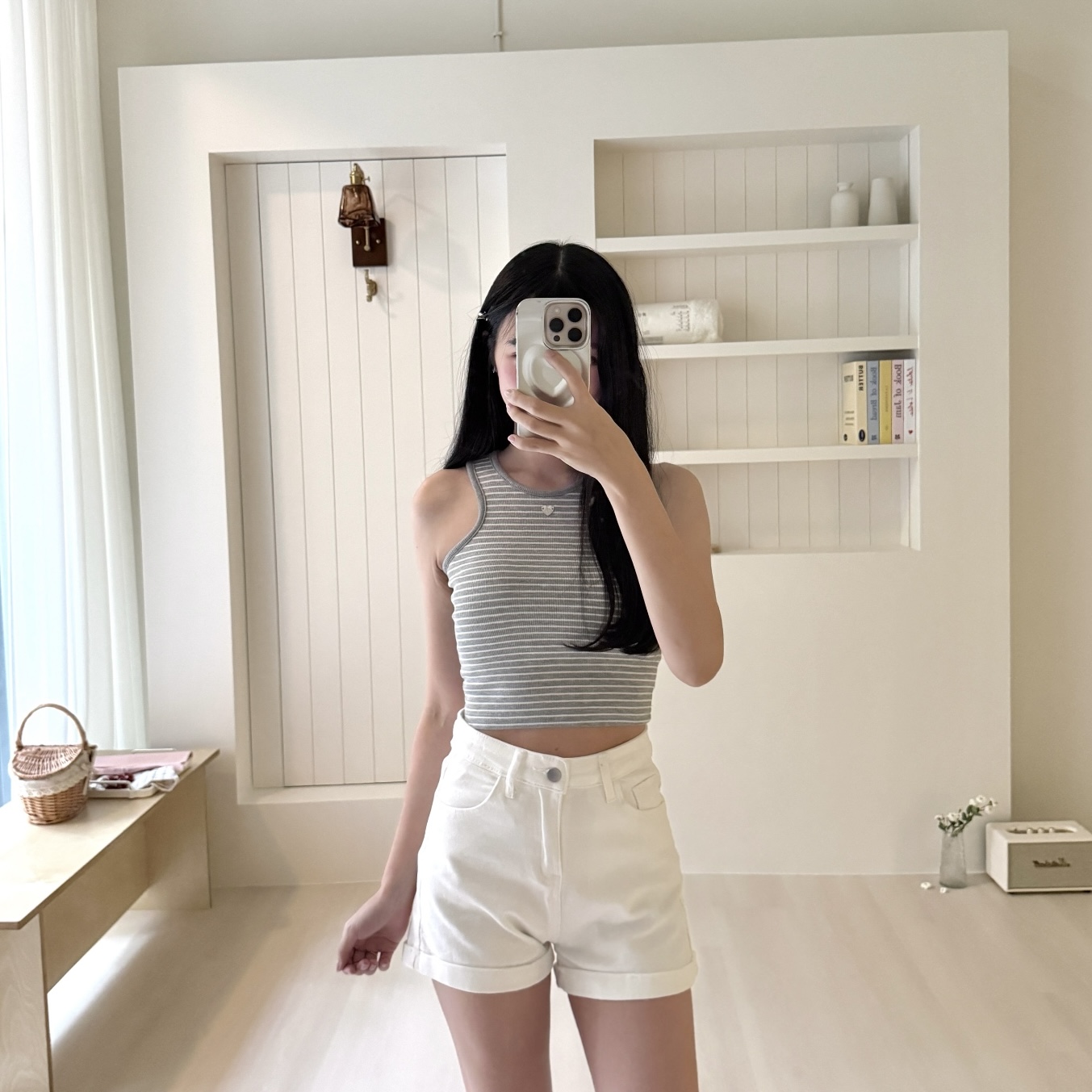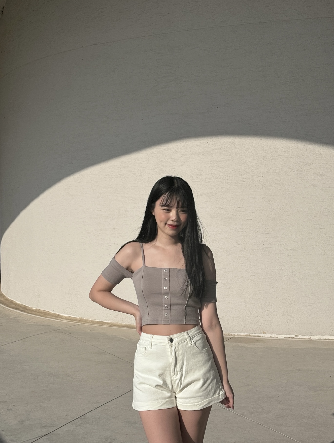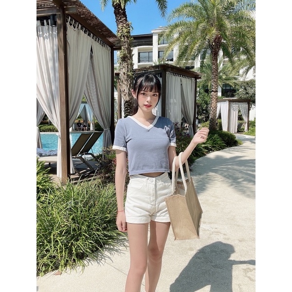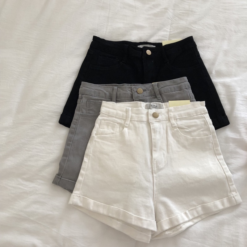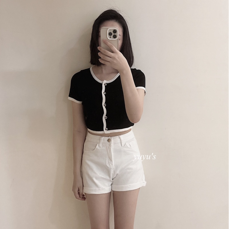 #版型偏小顯瘦單釦高腰彈性牛仔短褲