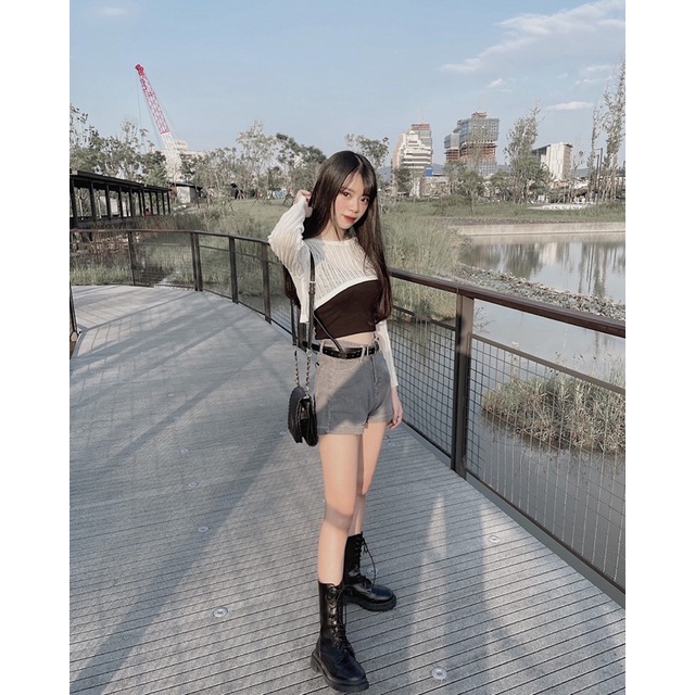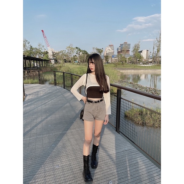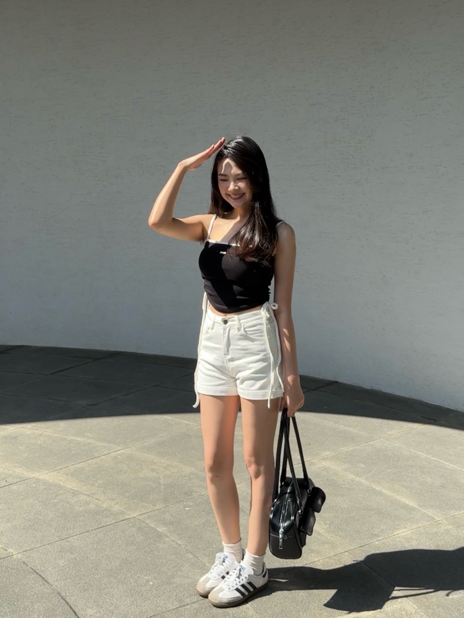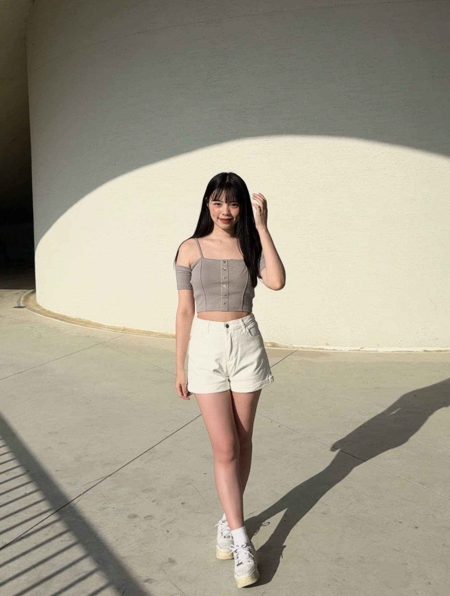 #版型偏小顯瘦單釦高腰彈性牛仔短褲