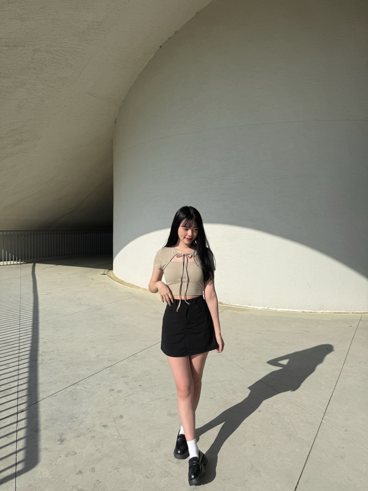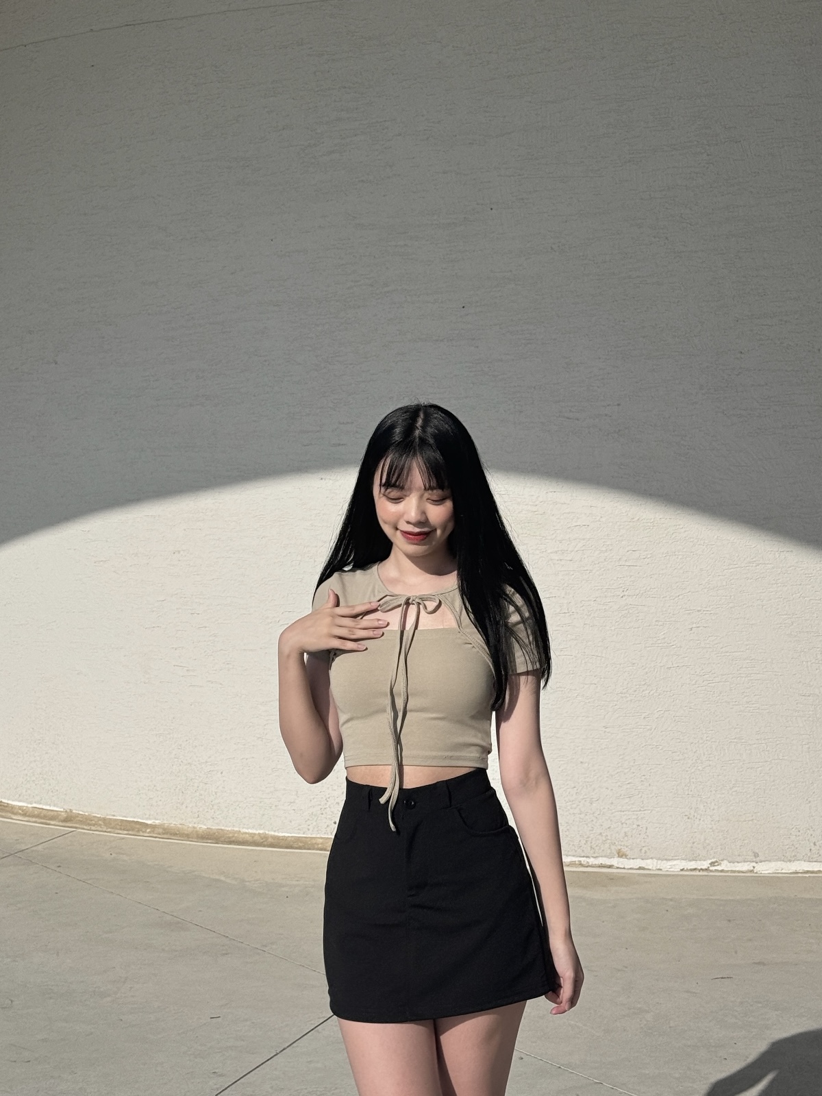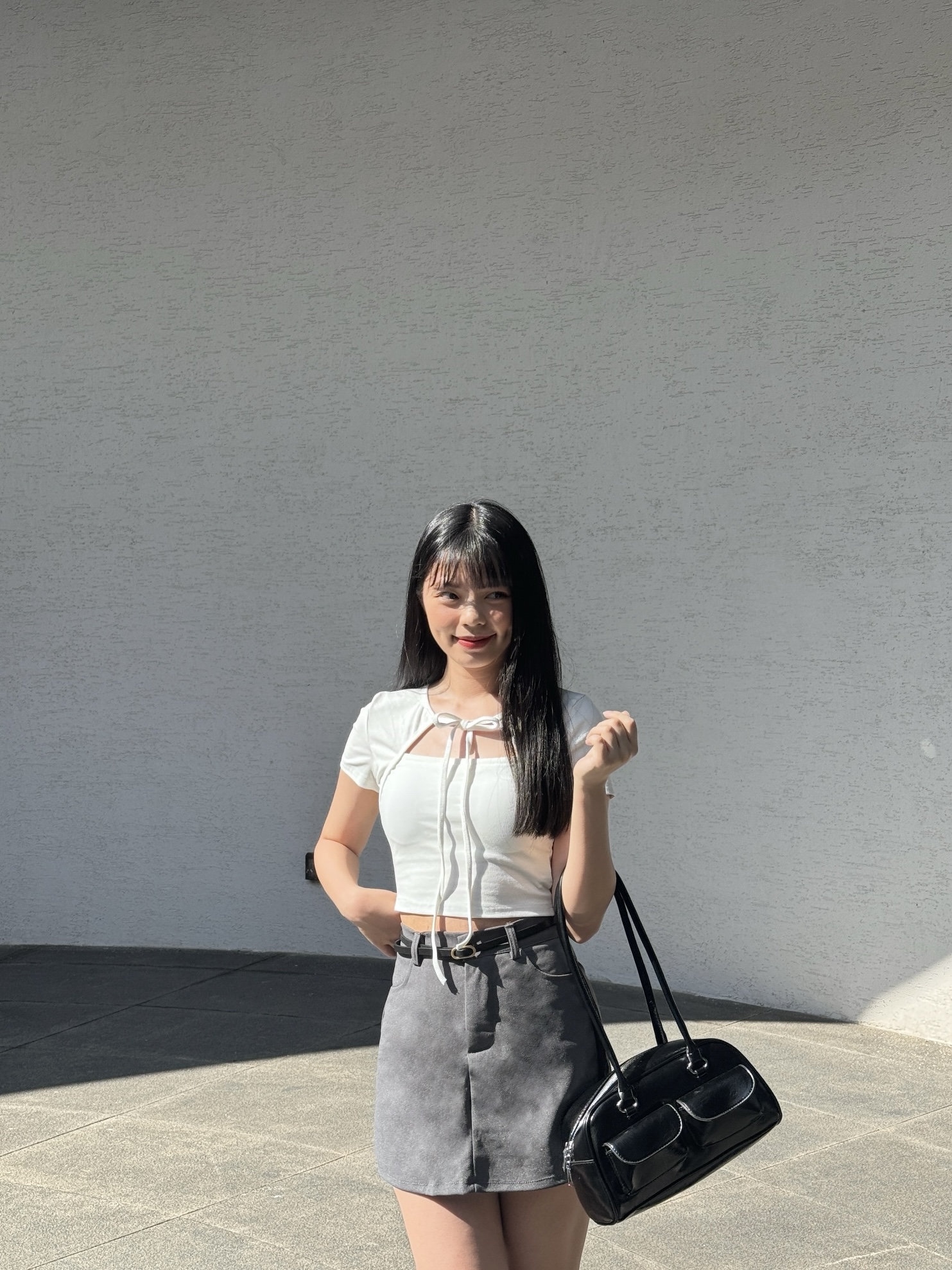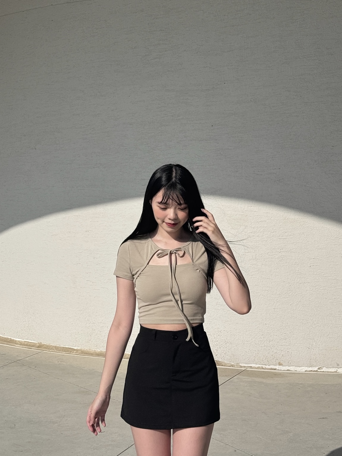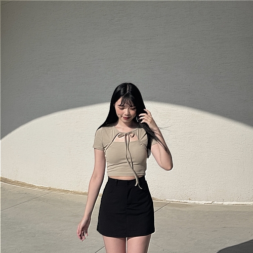 # 微甜綁帶 | 自帶bra簍空綁帶短袖
