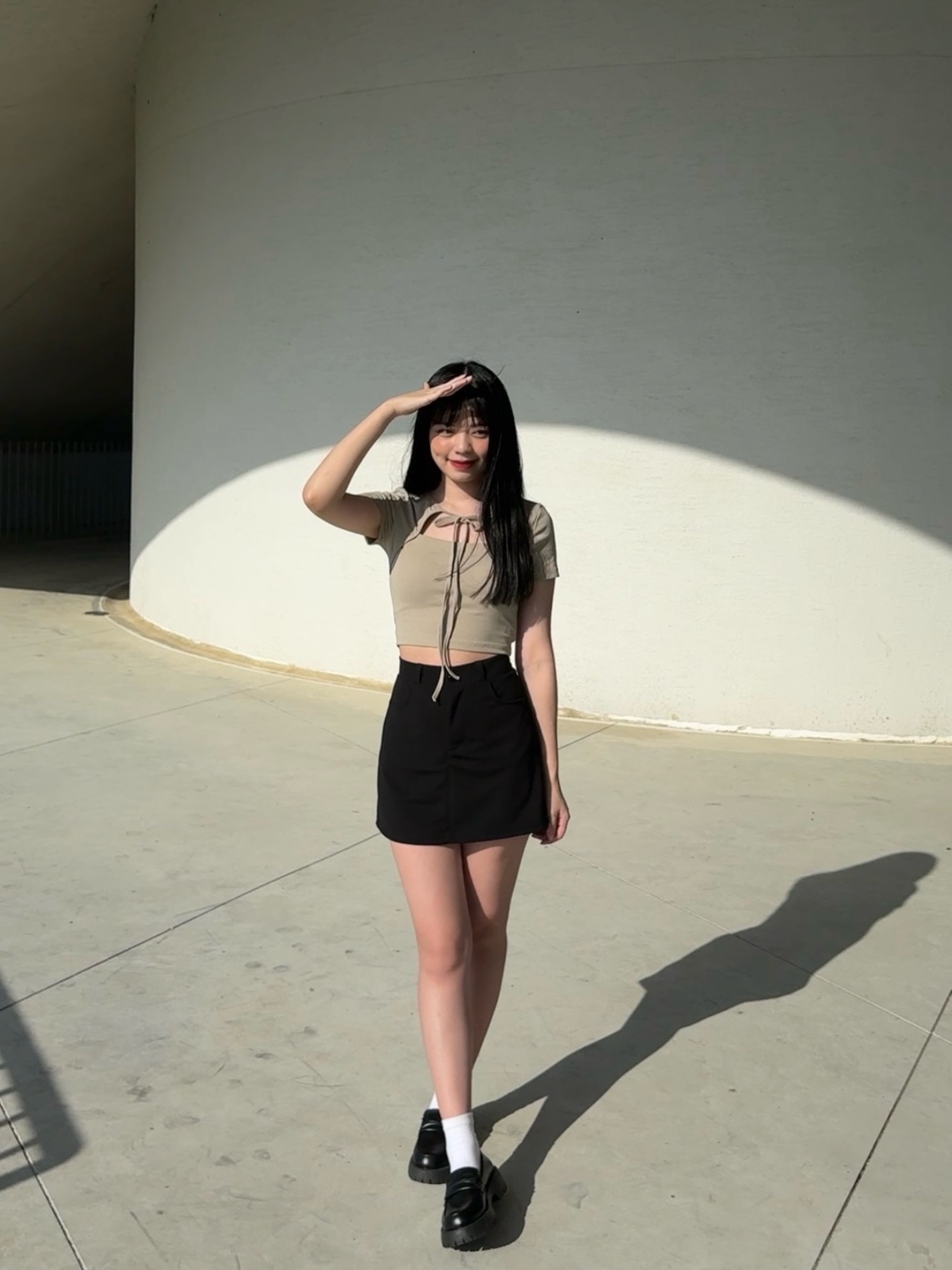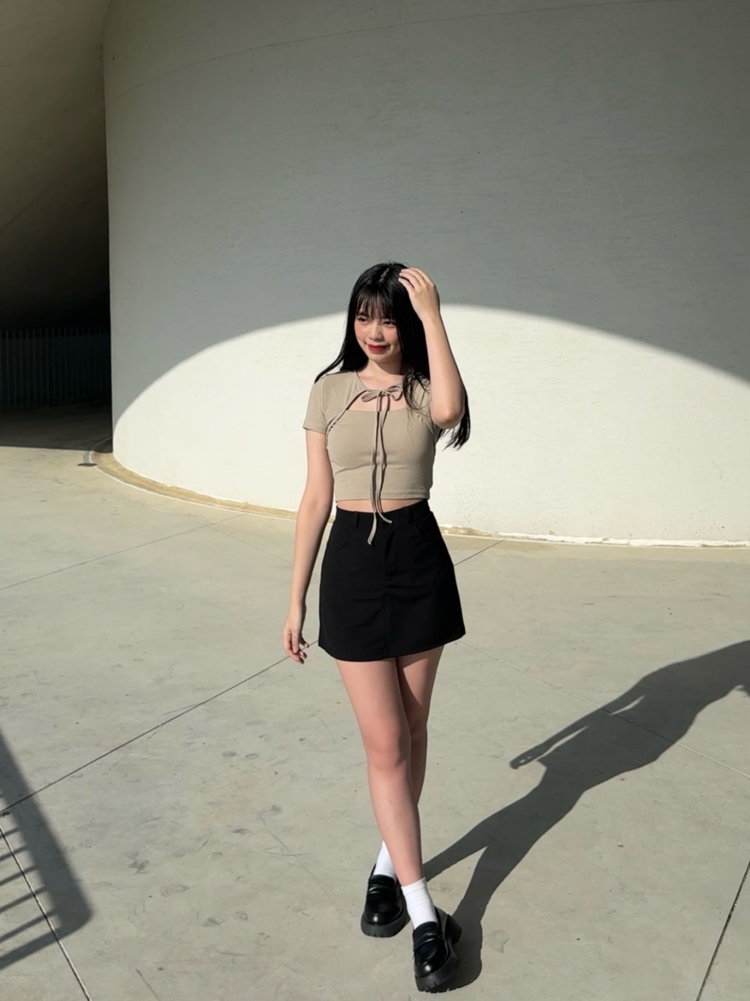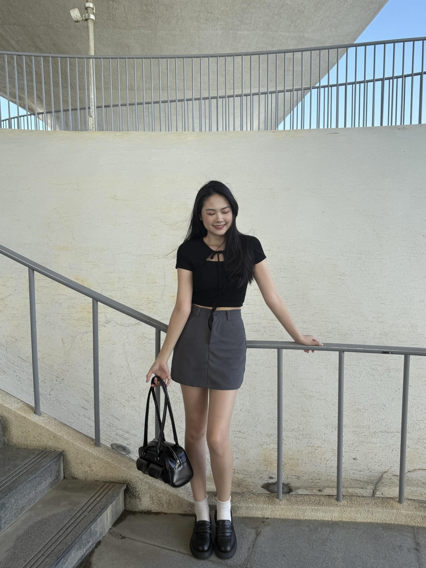 # 微甜綁帶 | 自帶bra簍空綁帶短袖