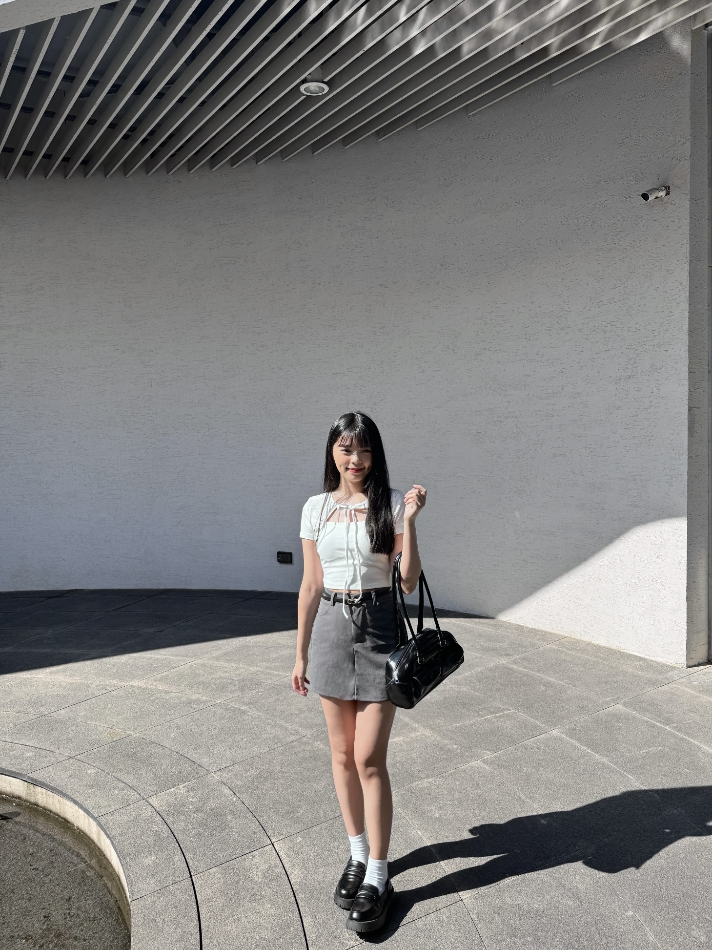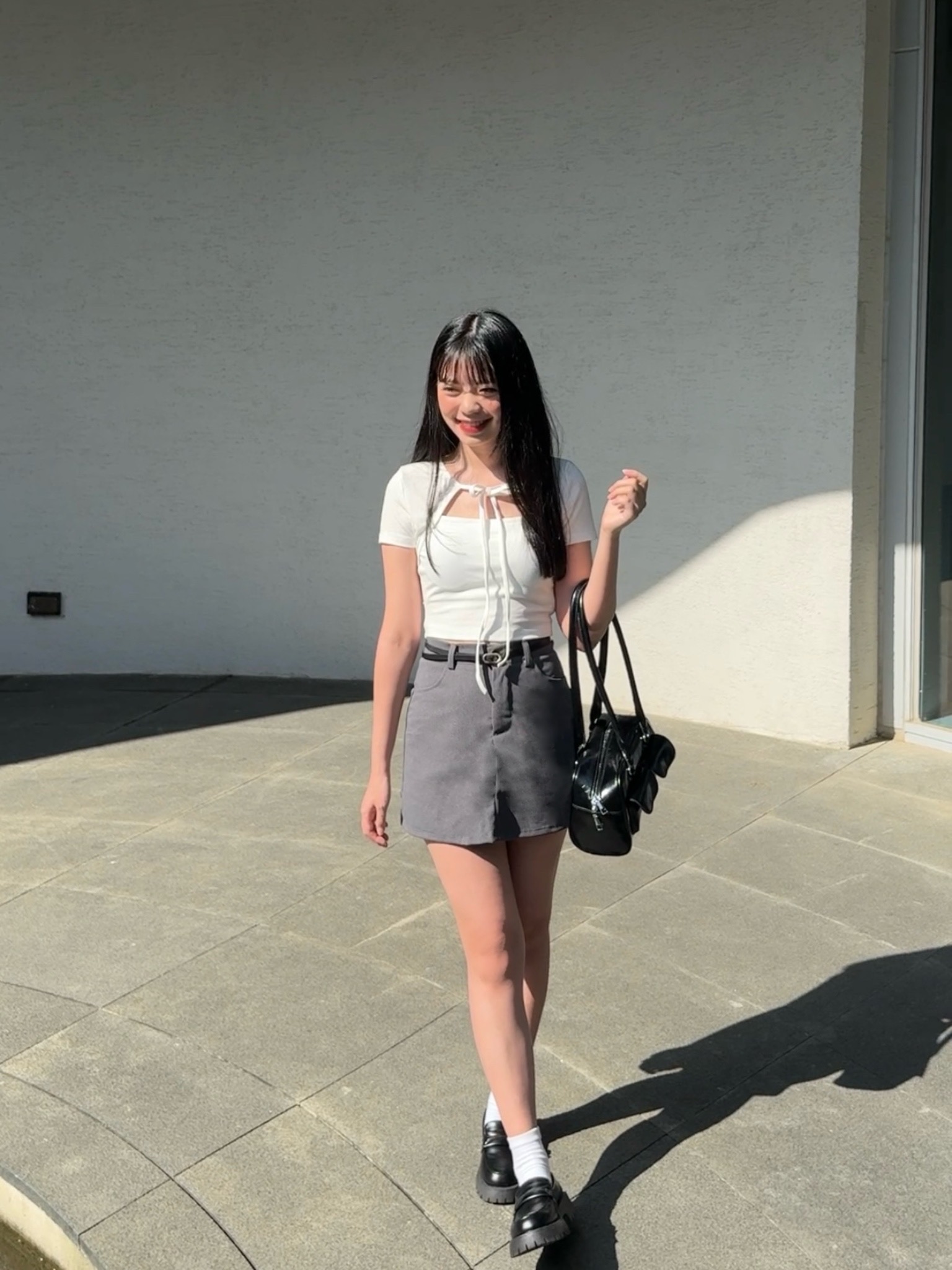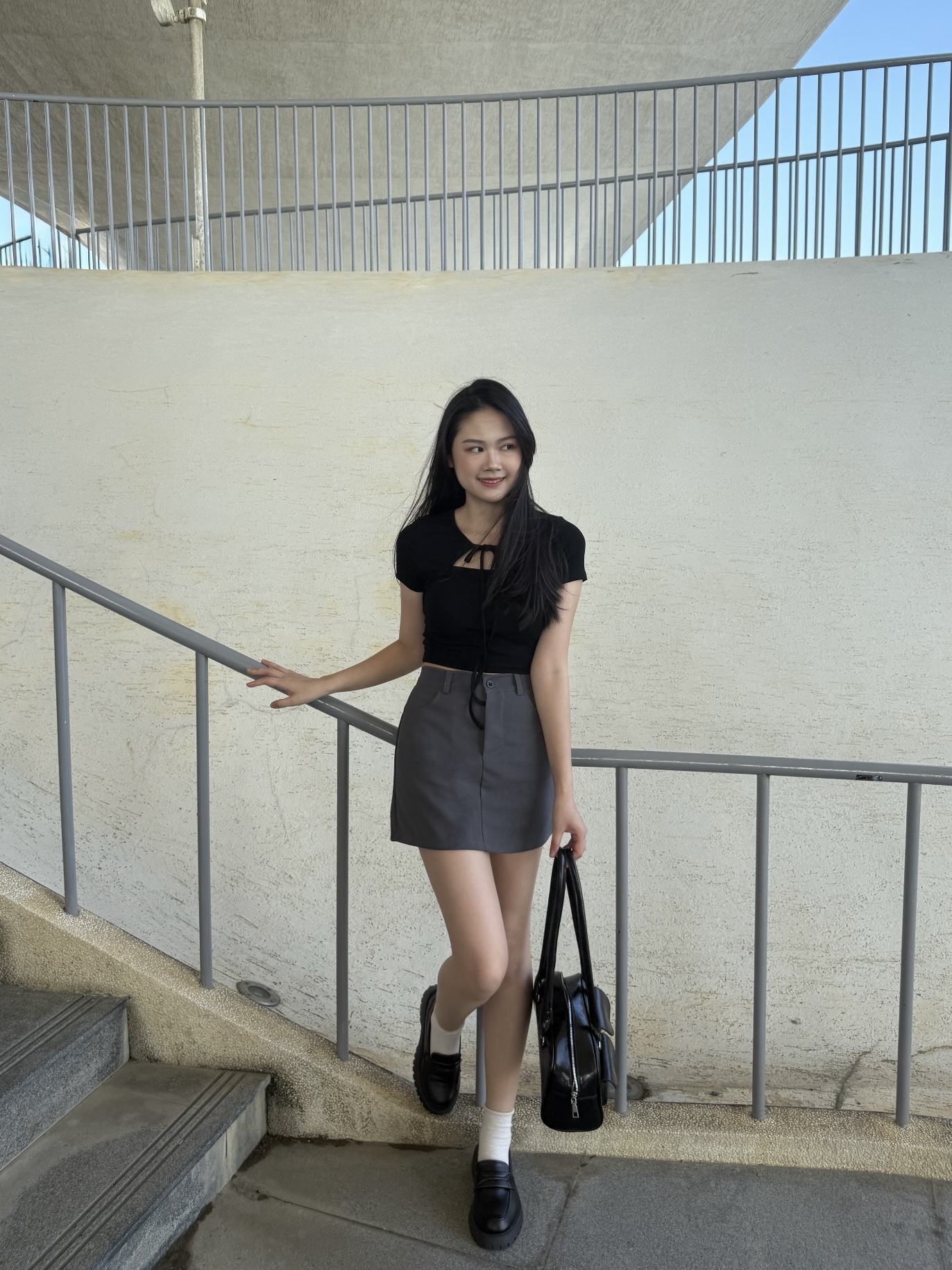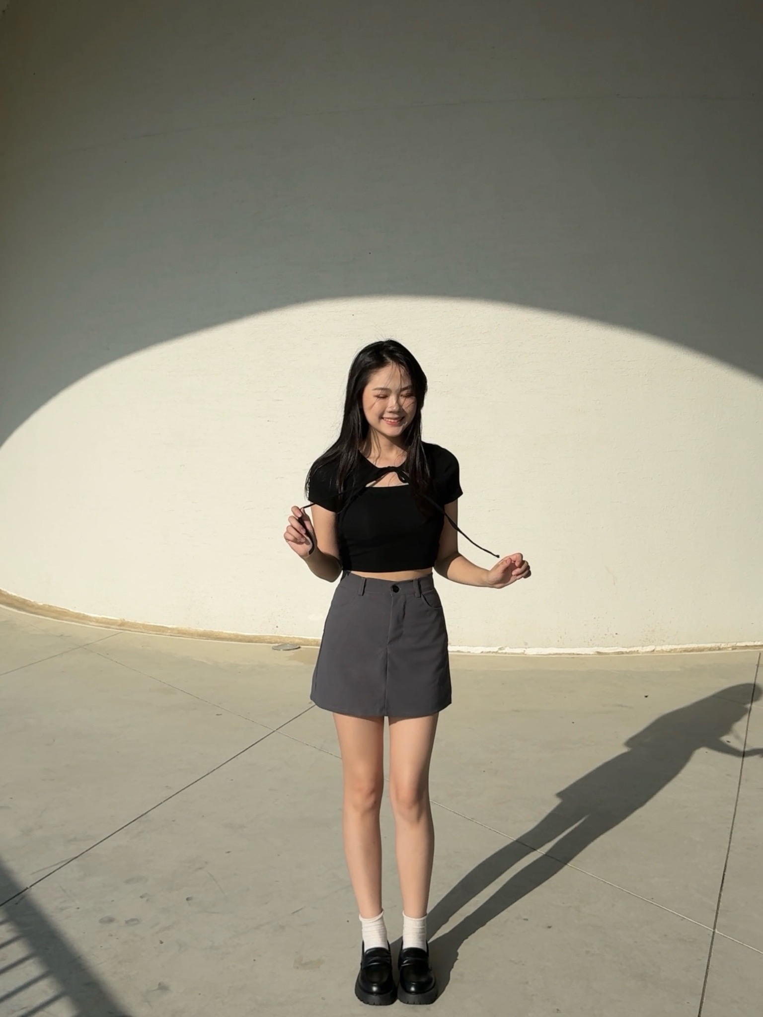 # 微甜綁帶 | 自帶bra簍空綁帶短袖
