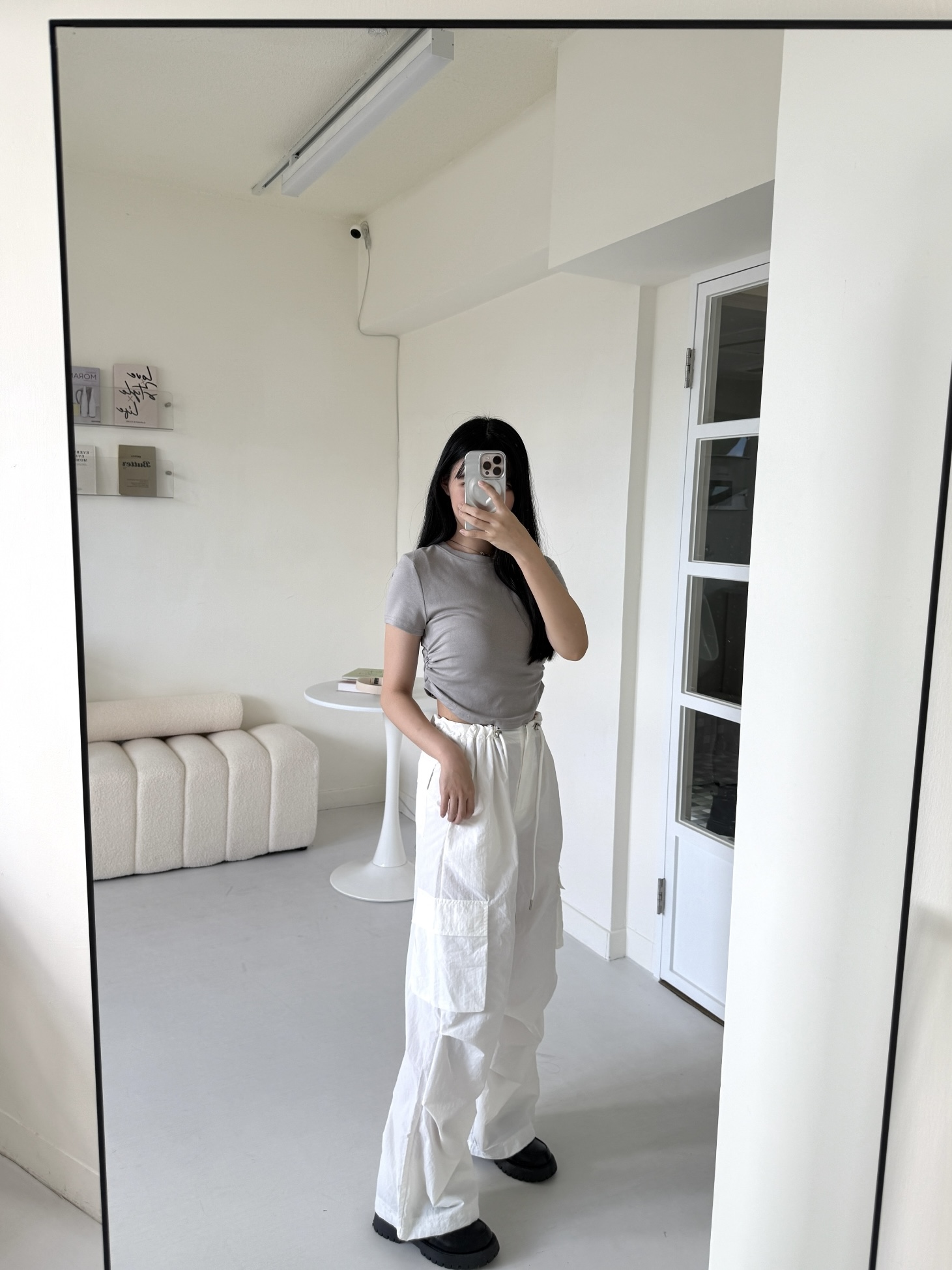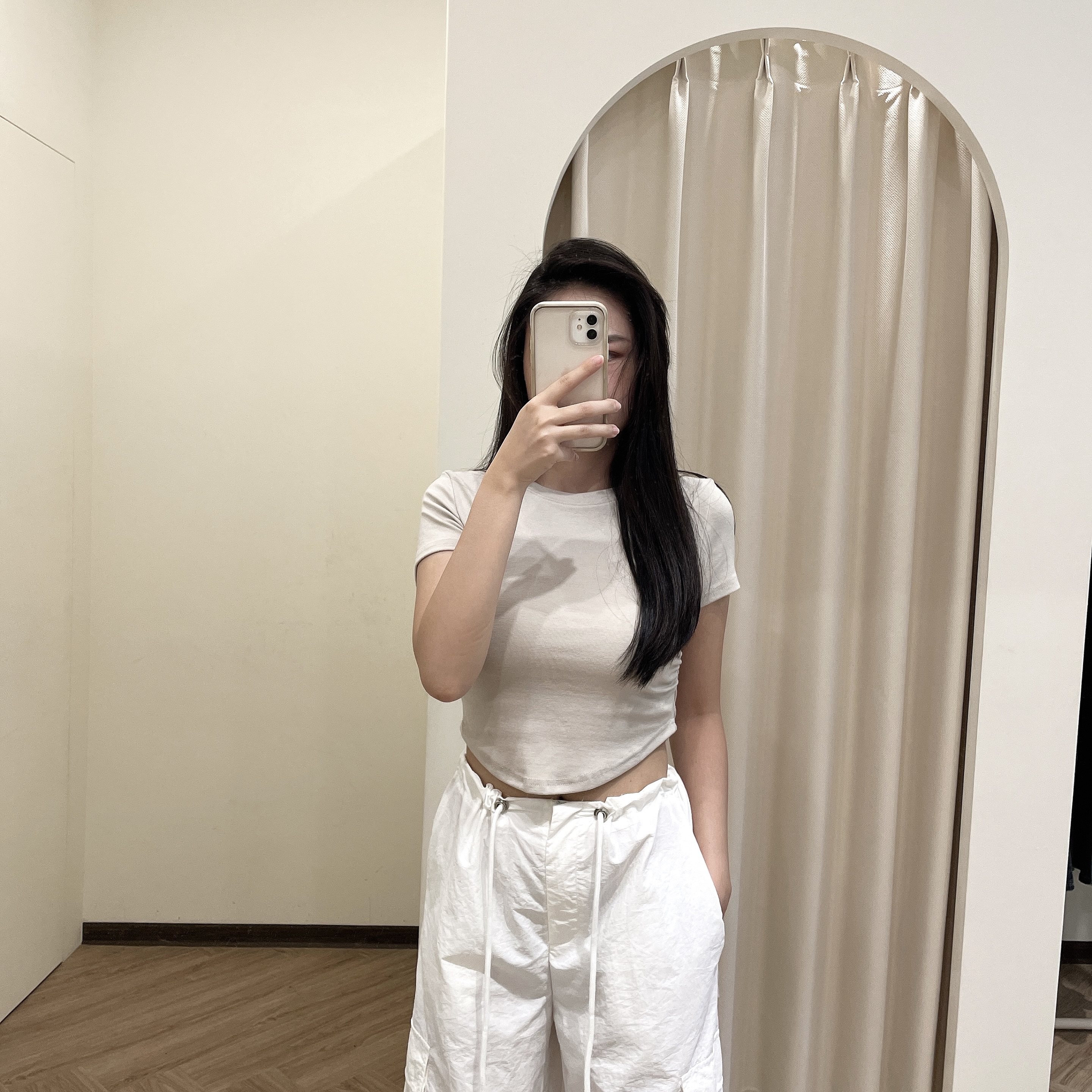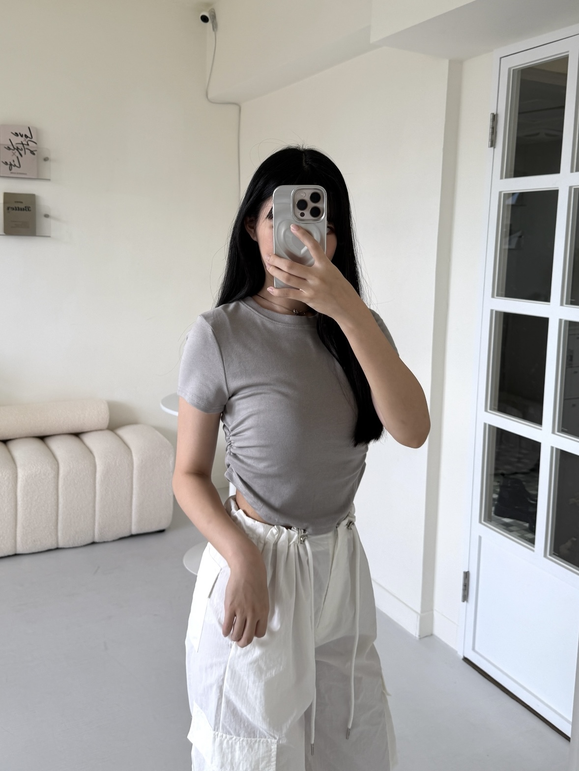 建議包色!! # 柔軟彈性棉抓皺素色短T