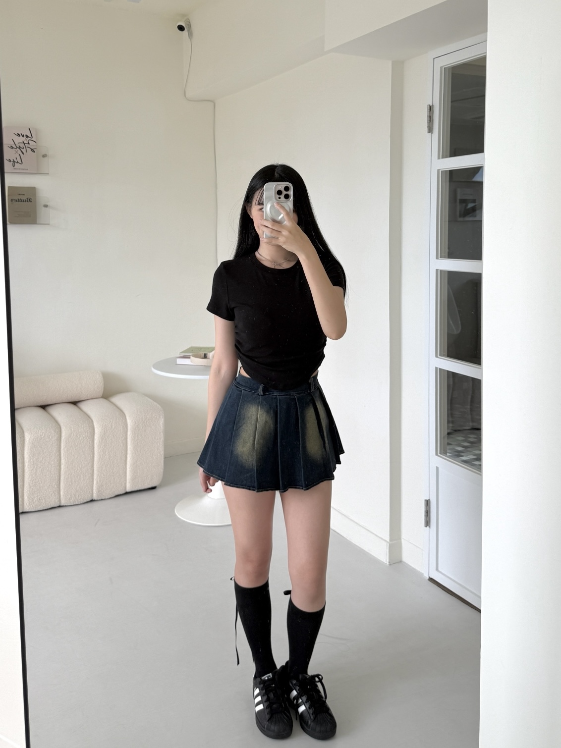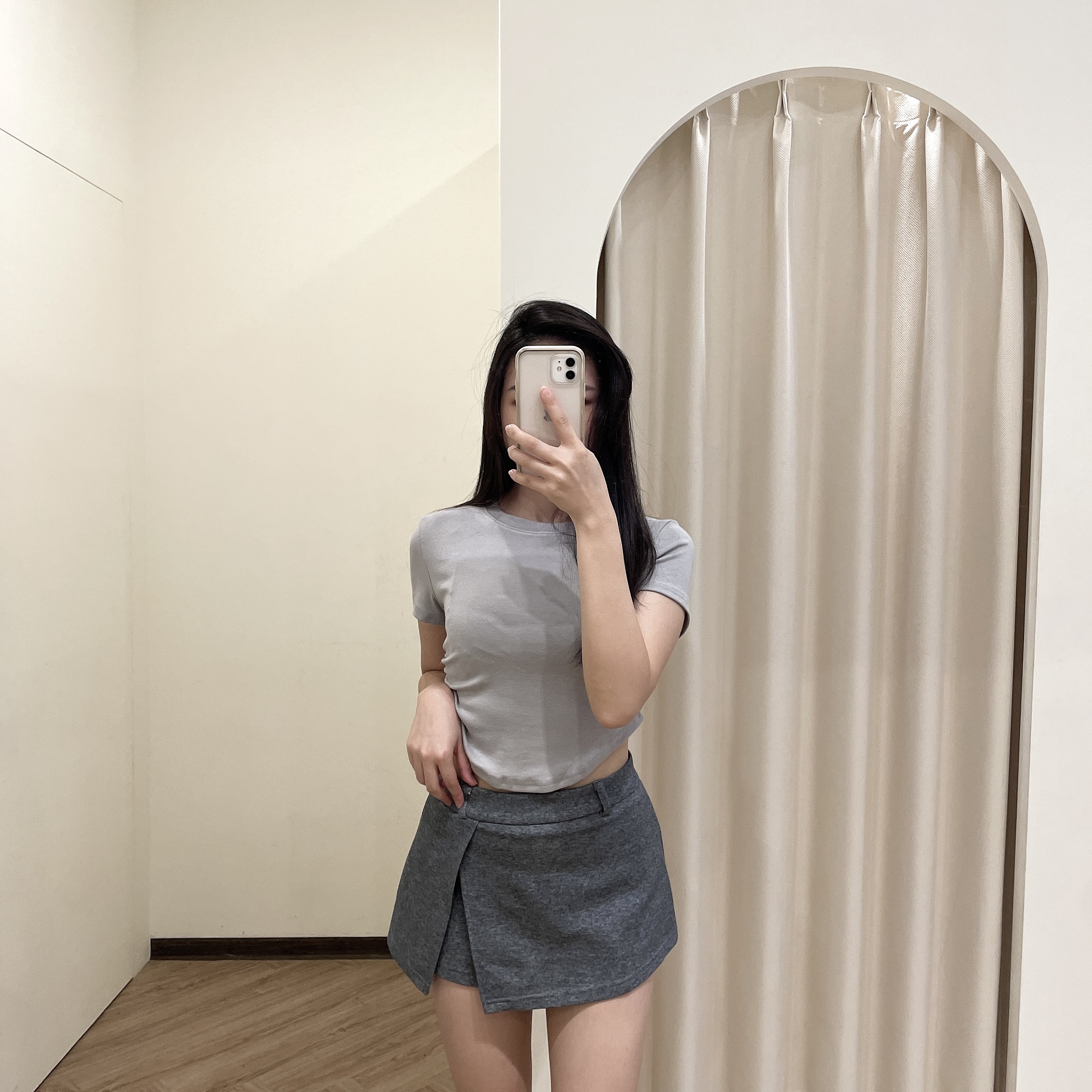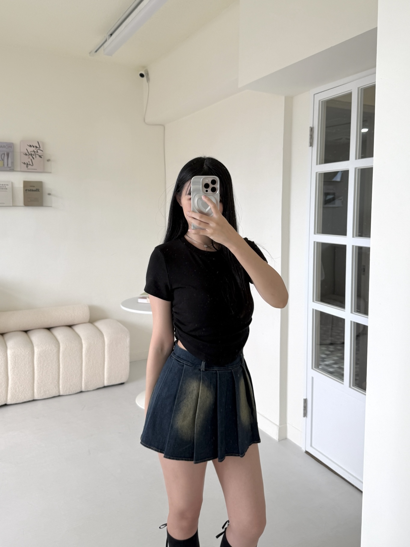 建議包色!! # 柔軟彈性棉抓皺素色短T