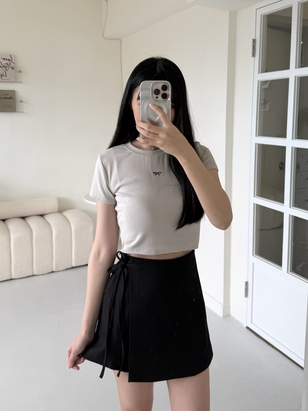 建議包色!! # 柔軟棉蝴蝶結刺繡短T