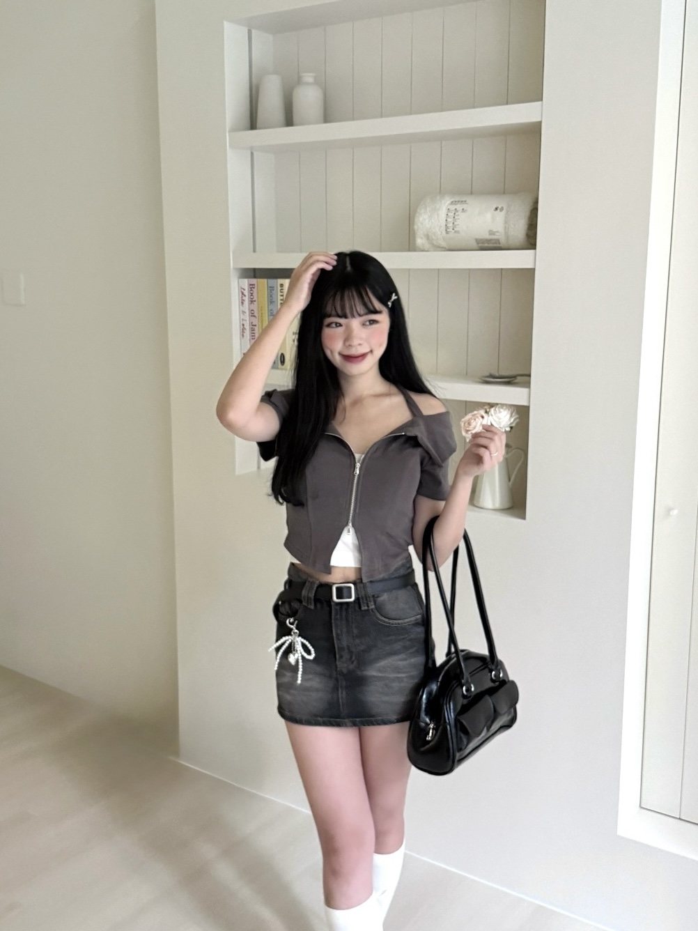 版娘自留! # 小個子深灰刷色牛仔短裙