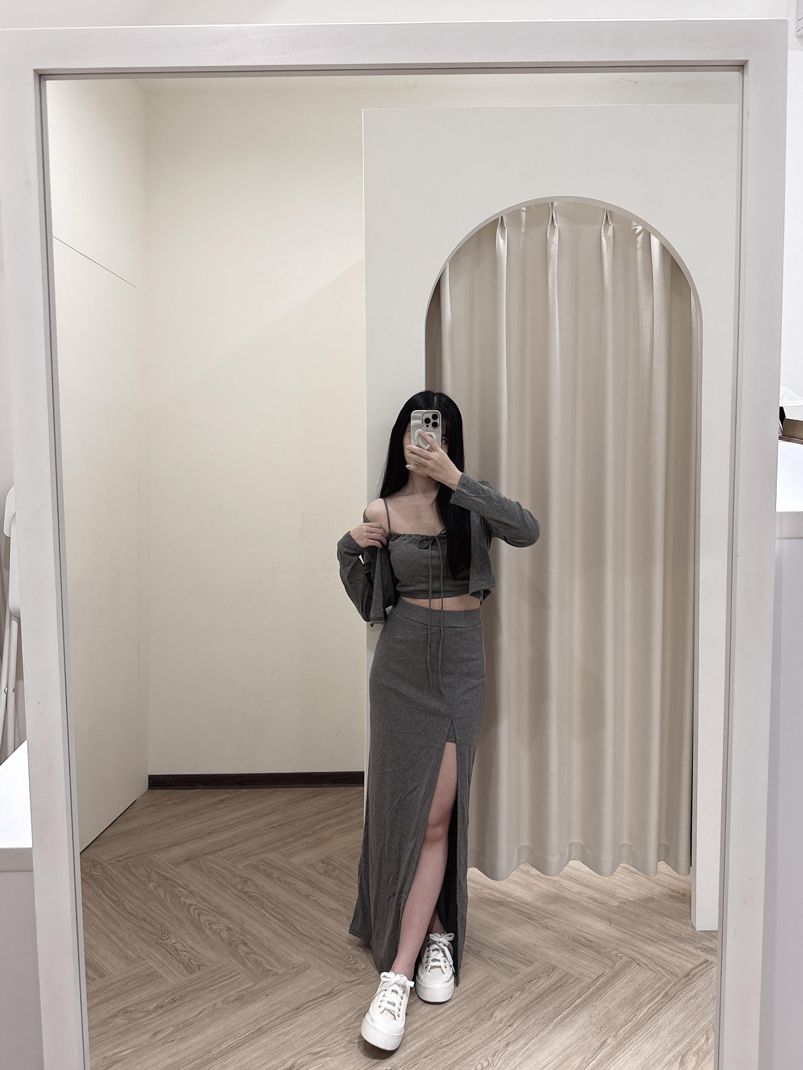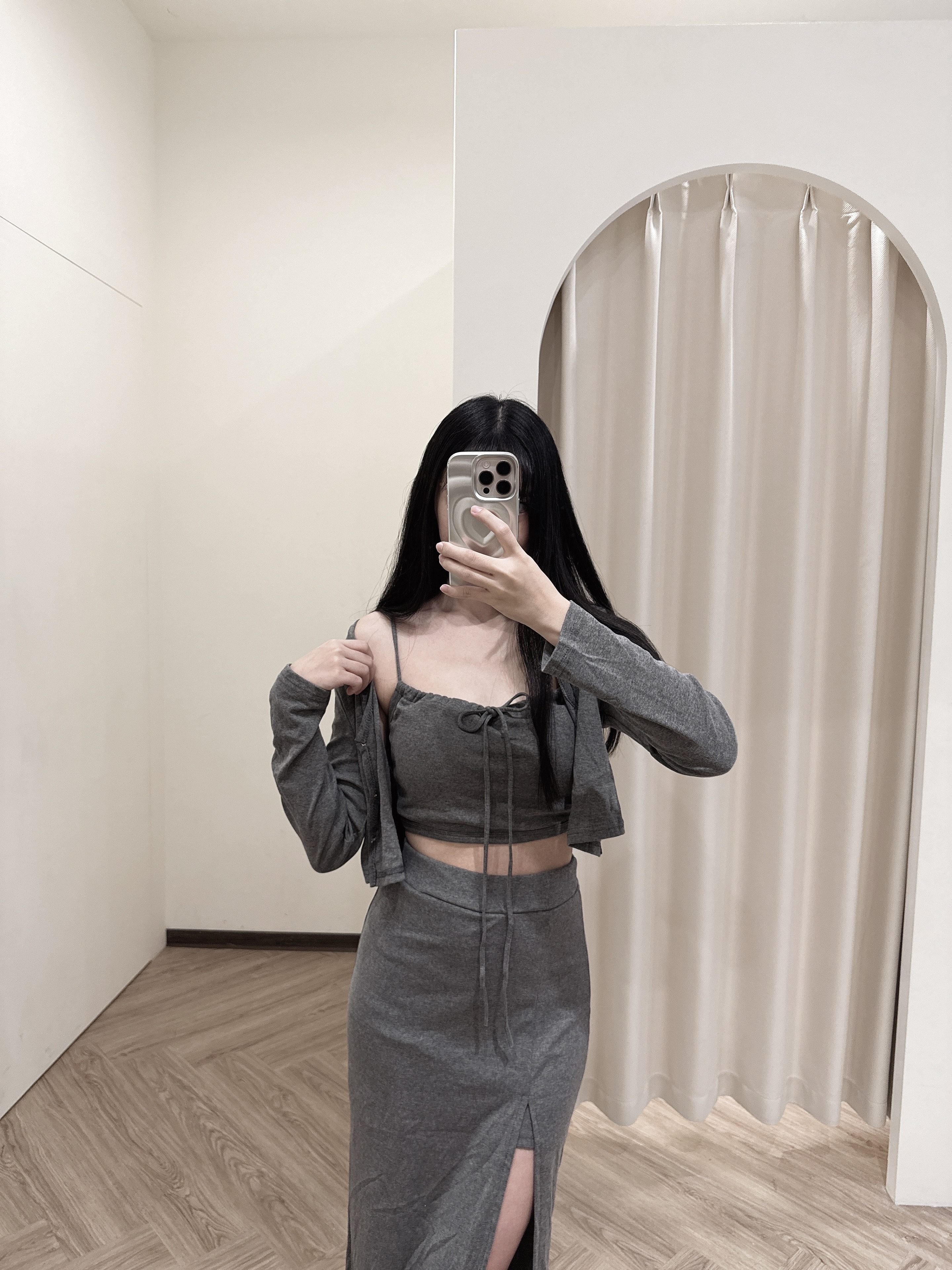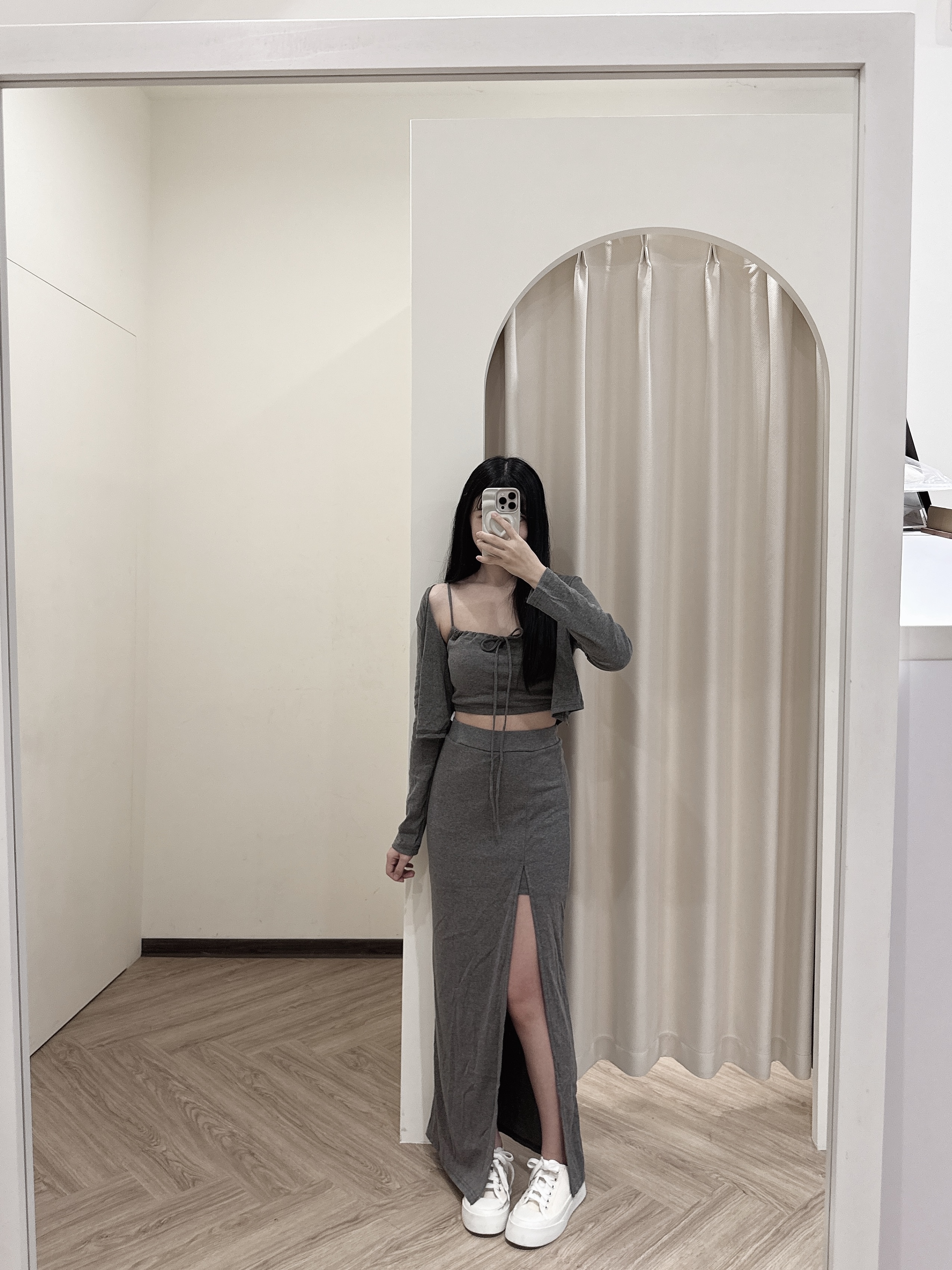 綁帶背心.小外套.長裙3件組 附胸墊 內有安全褲