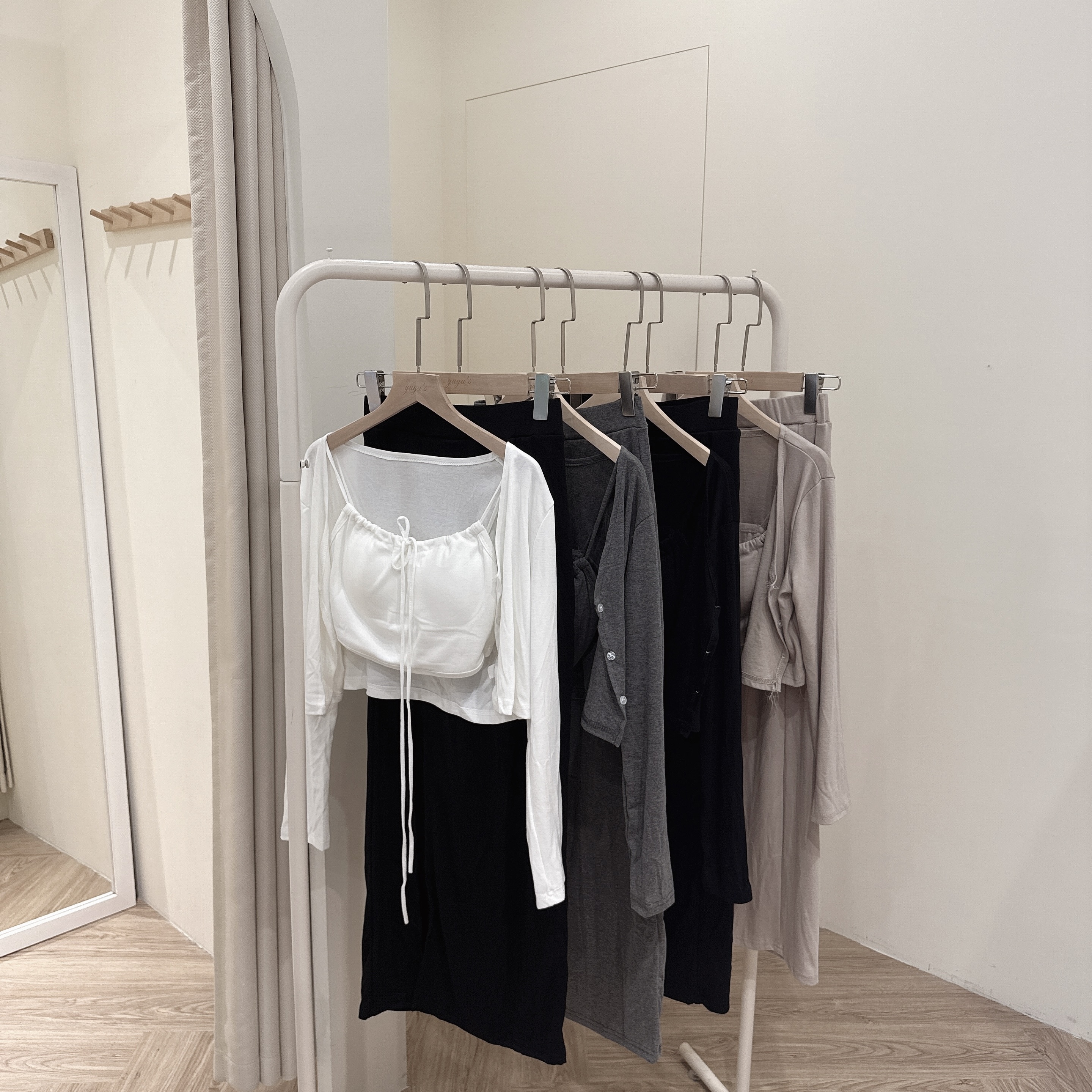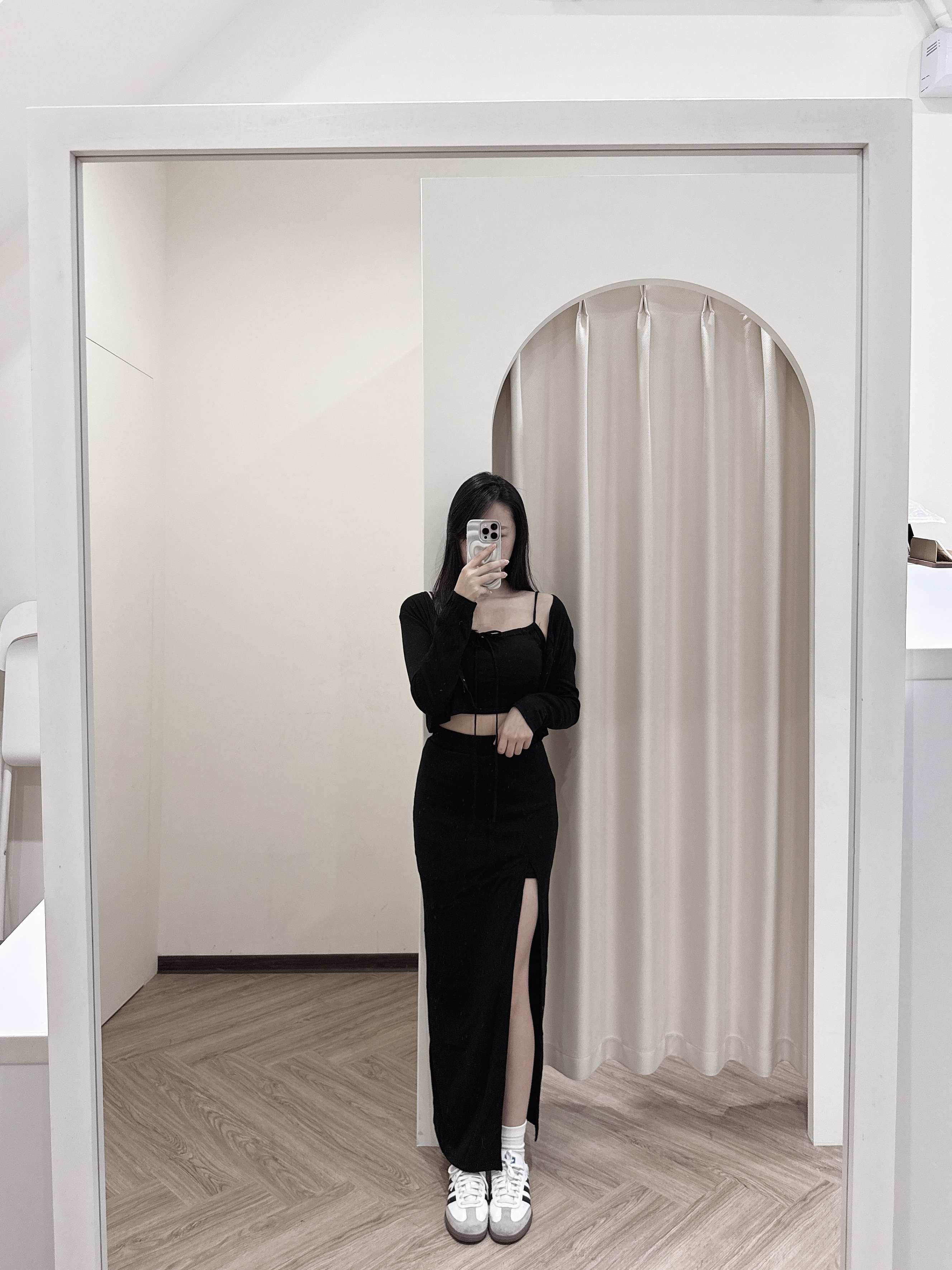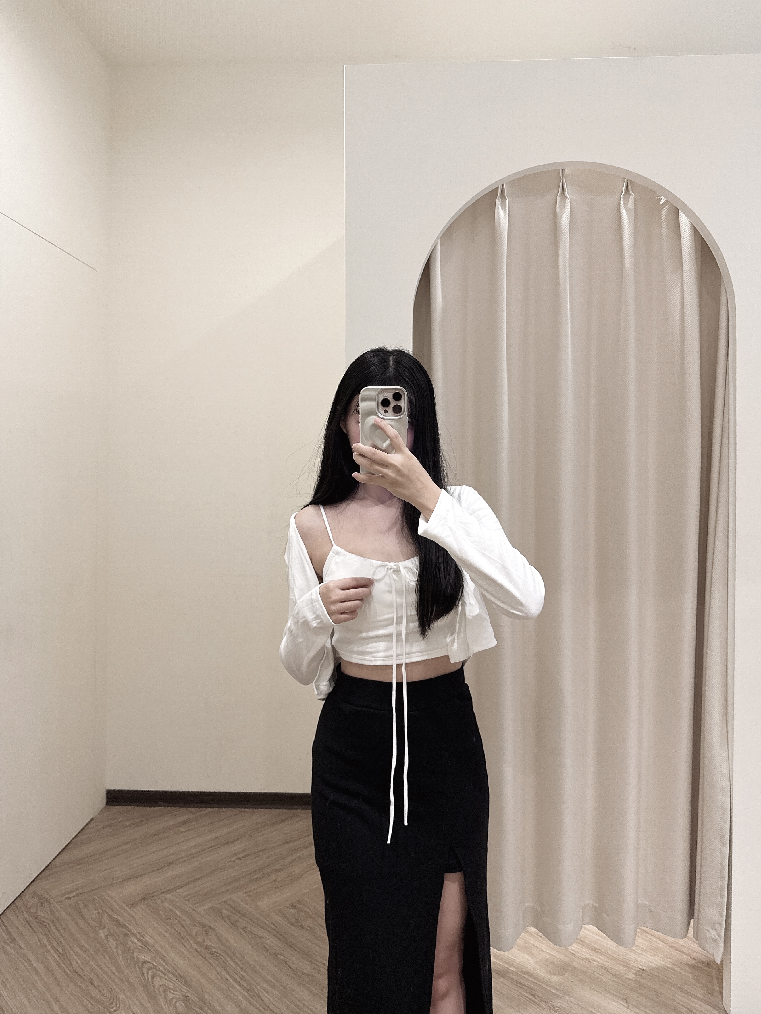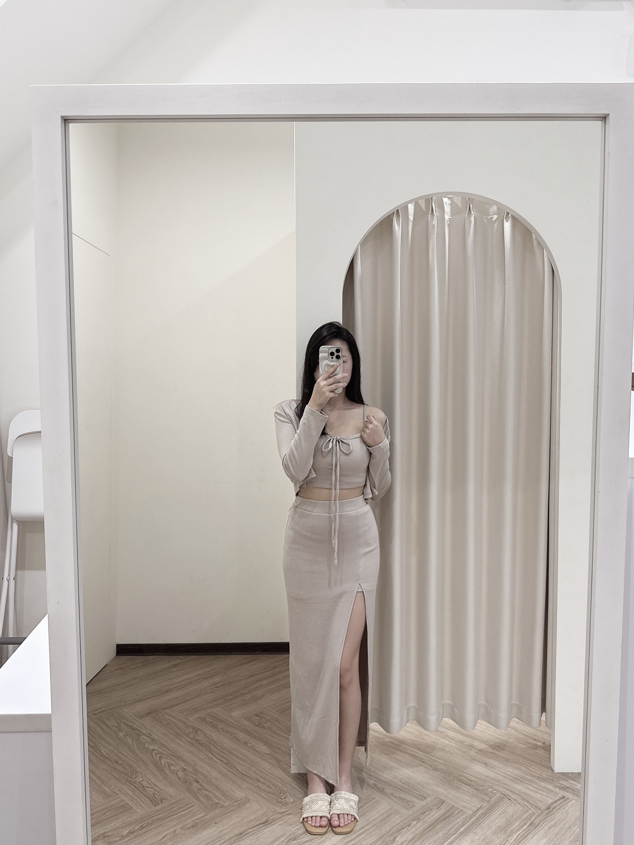 綁帶背心.小外套.長裙3件組 附胸墊 內有安全褲