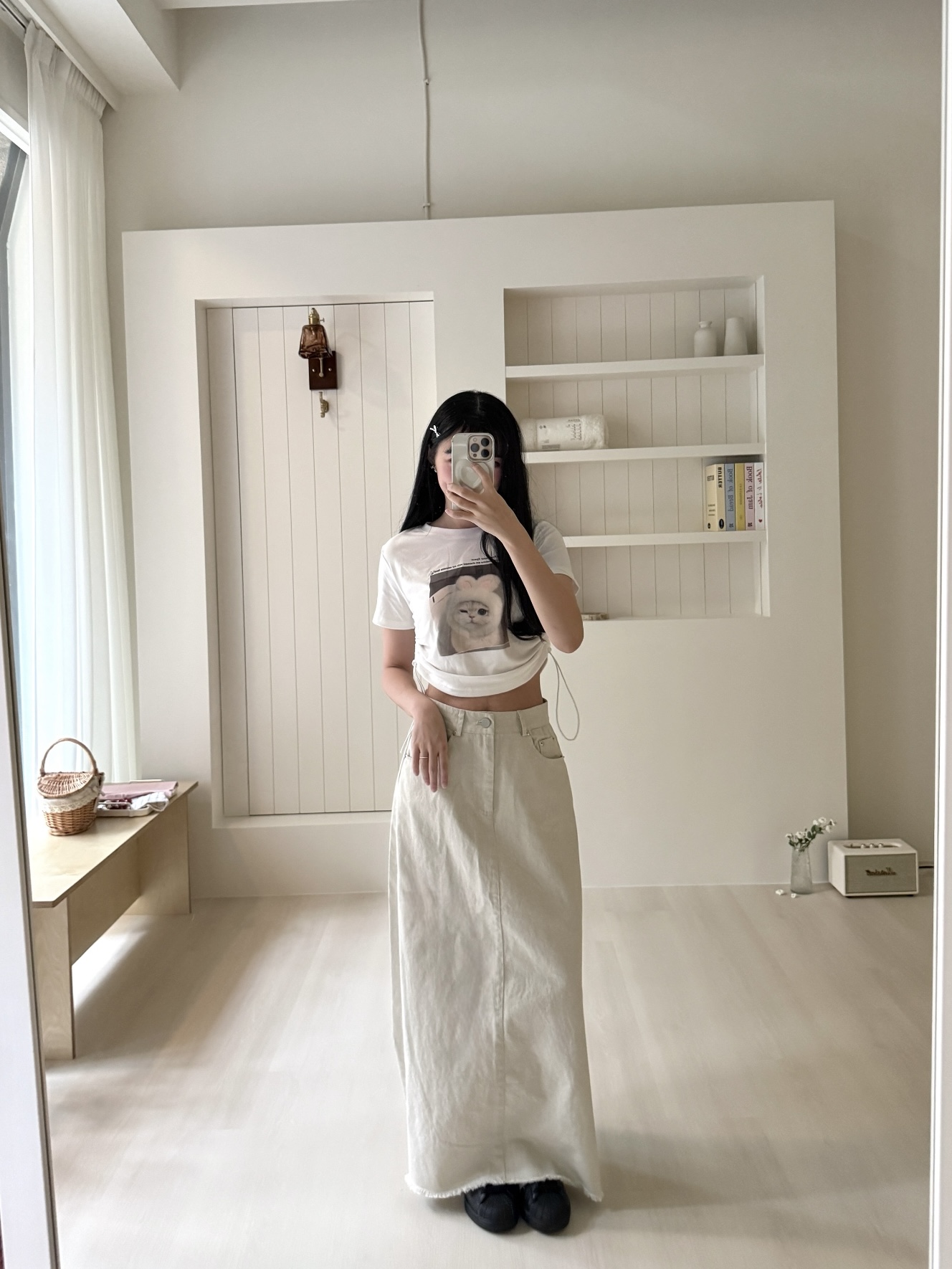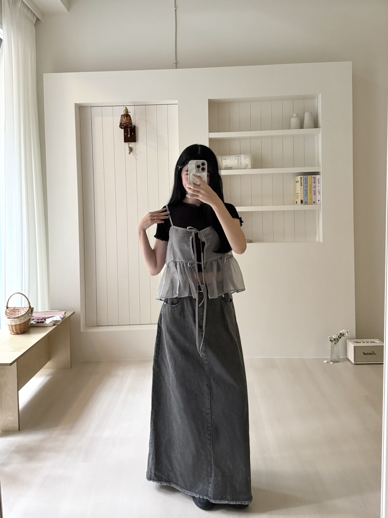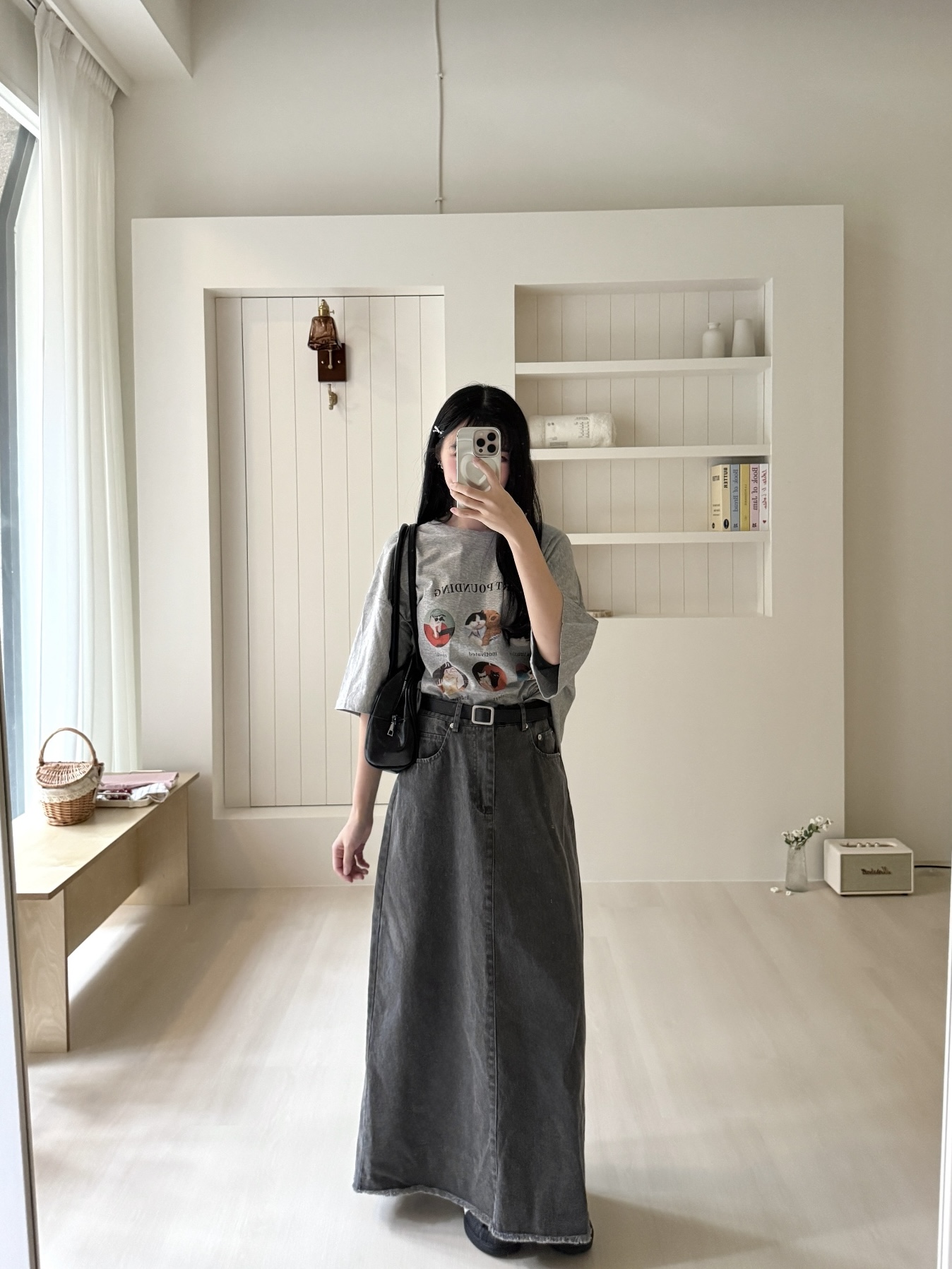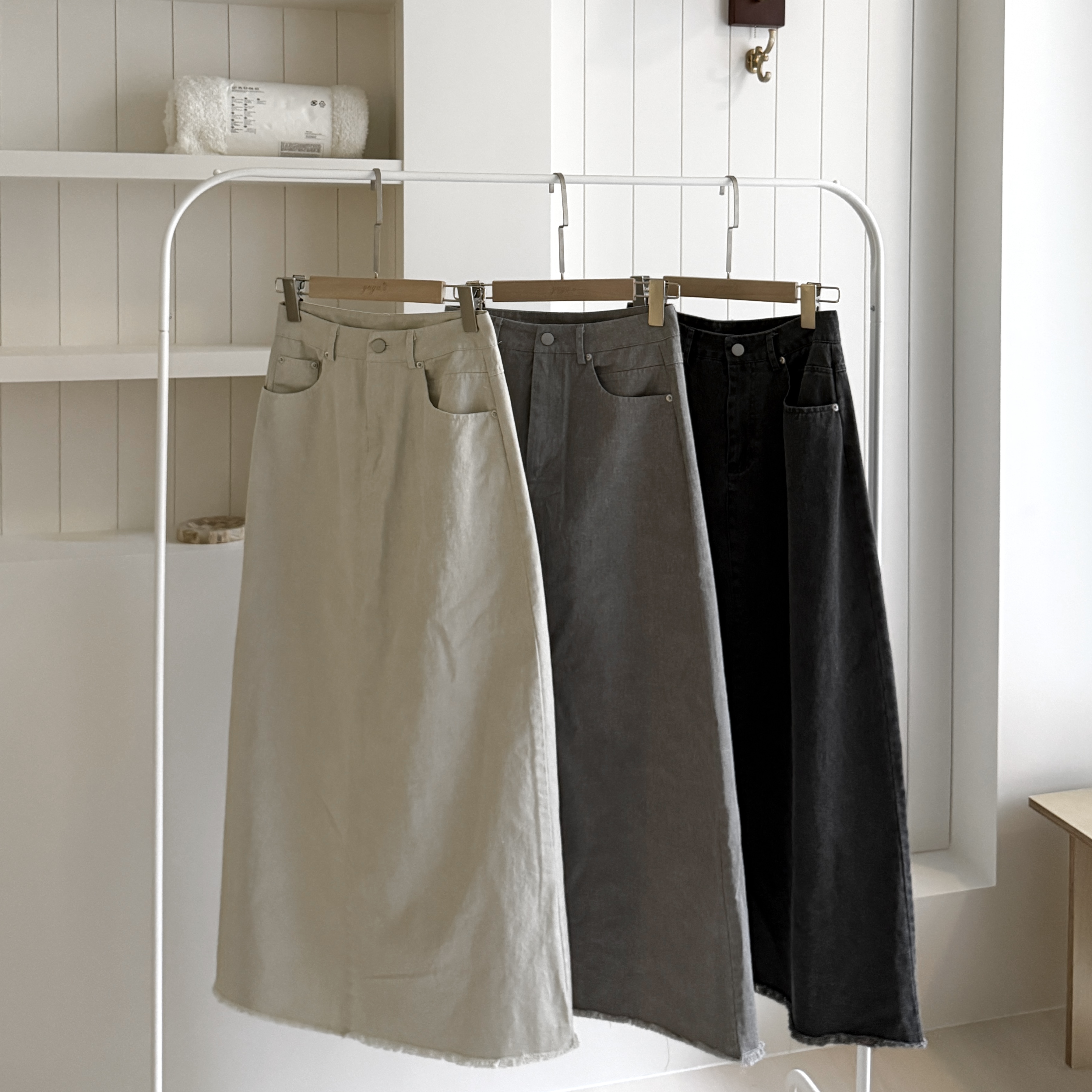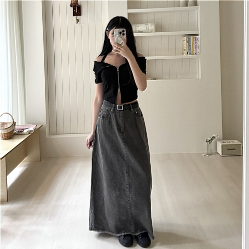 # 單扣水洗牛仔A字長裙