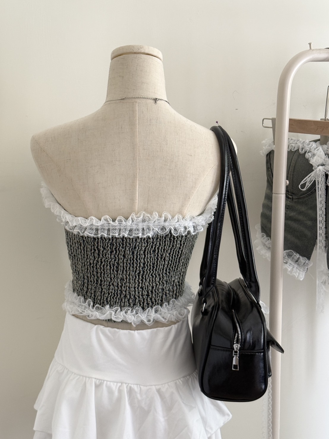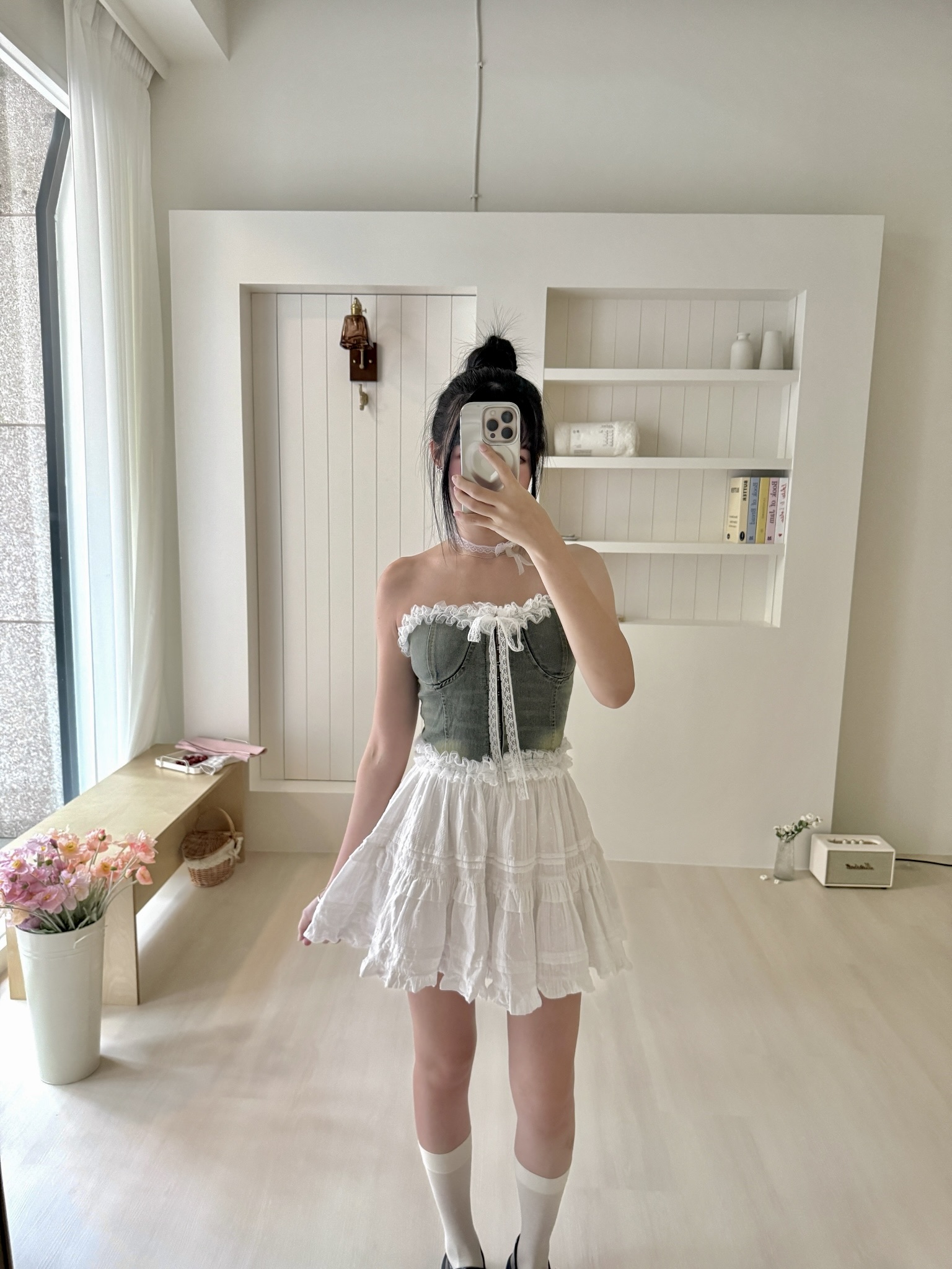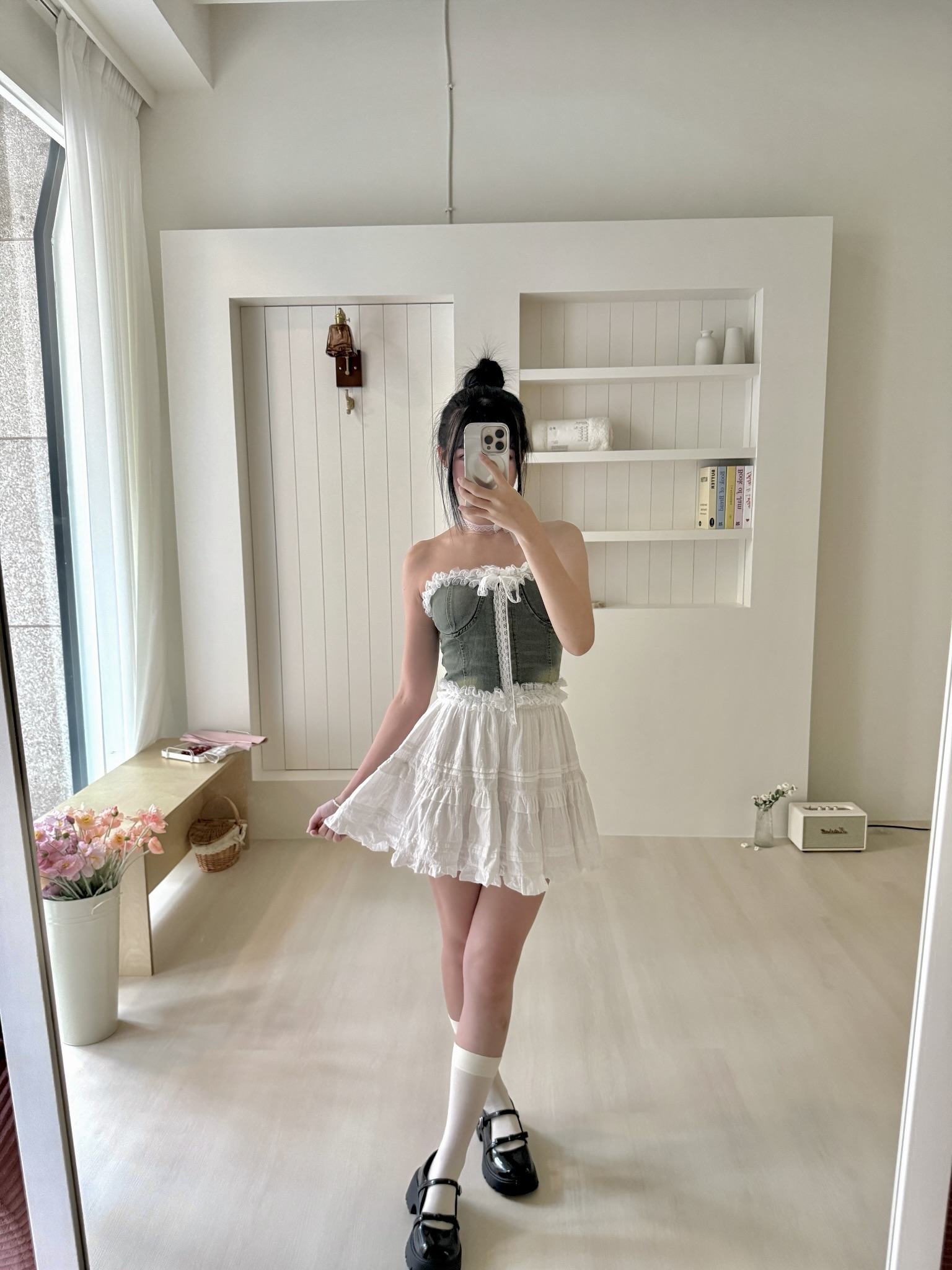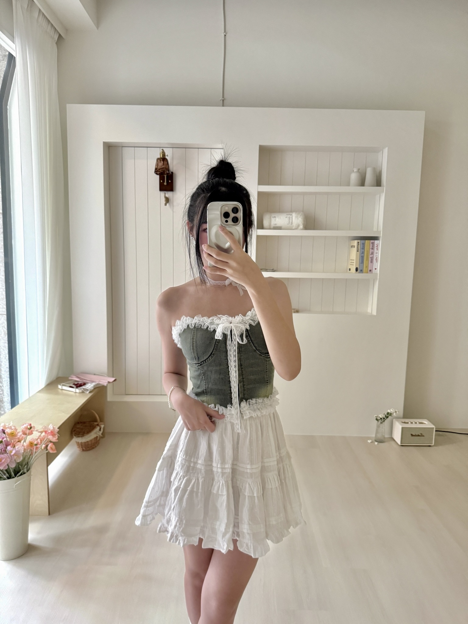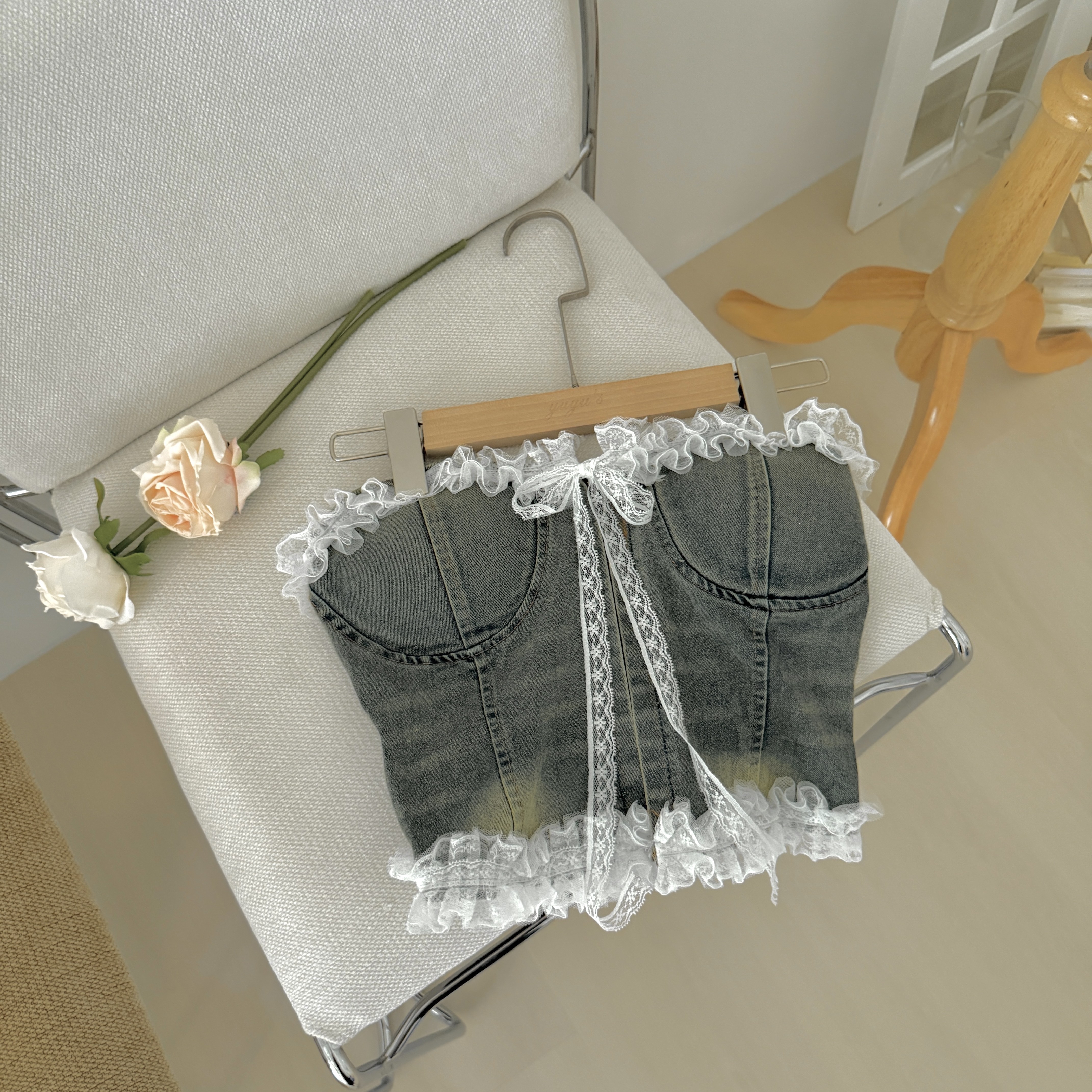 復古刷色丹寧搭上甜美蕾絲౨ৎ