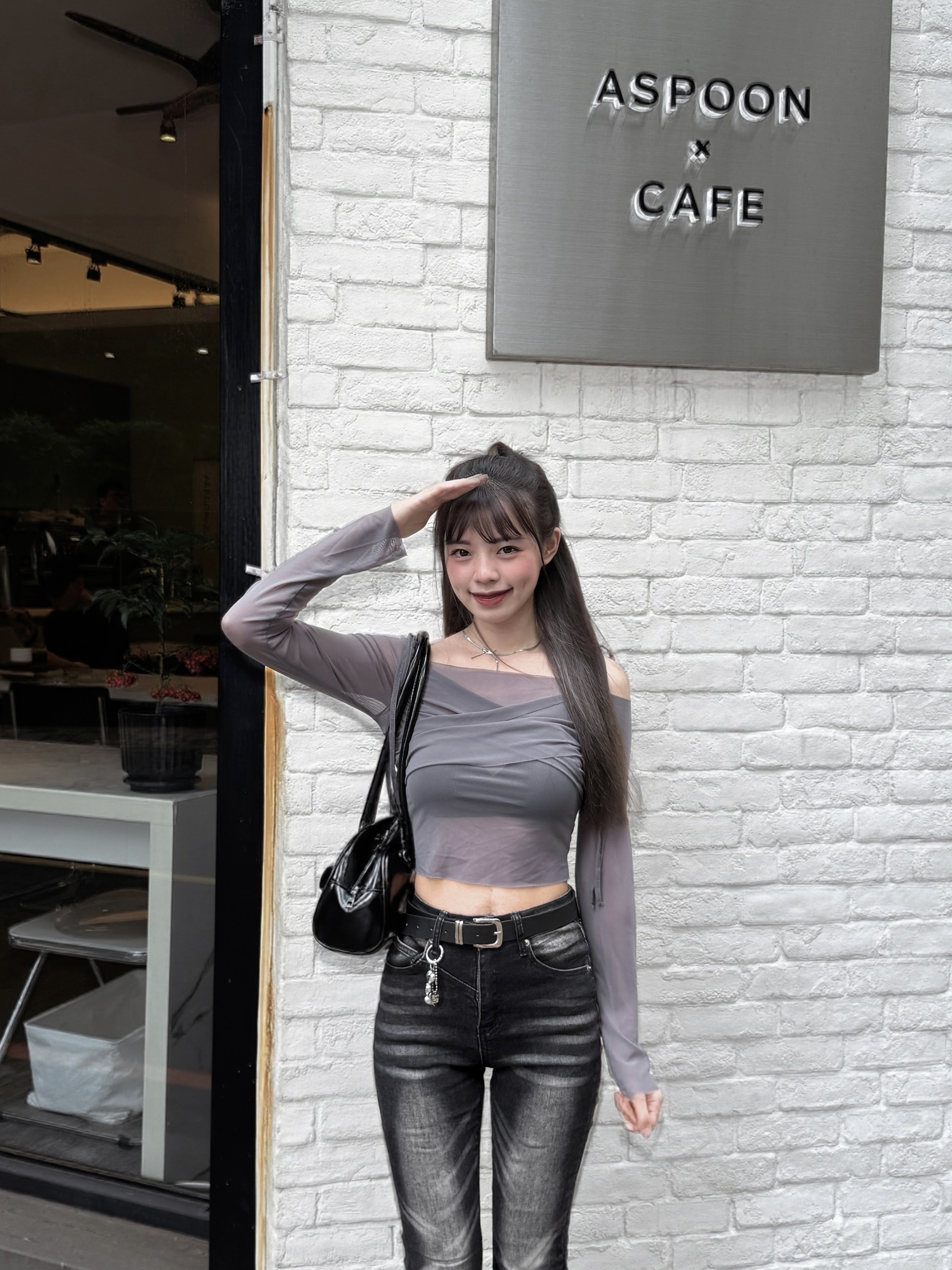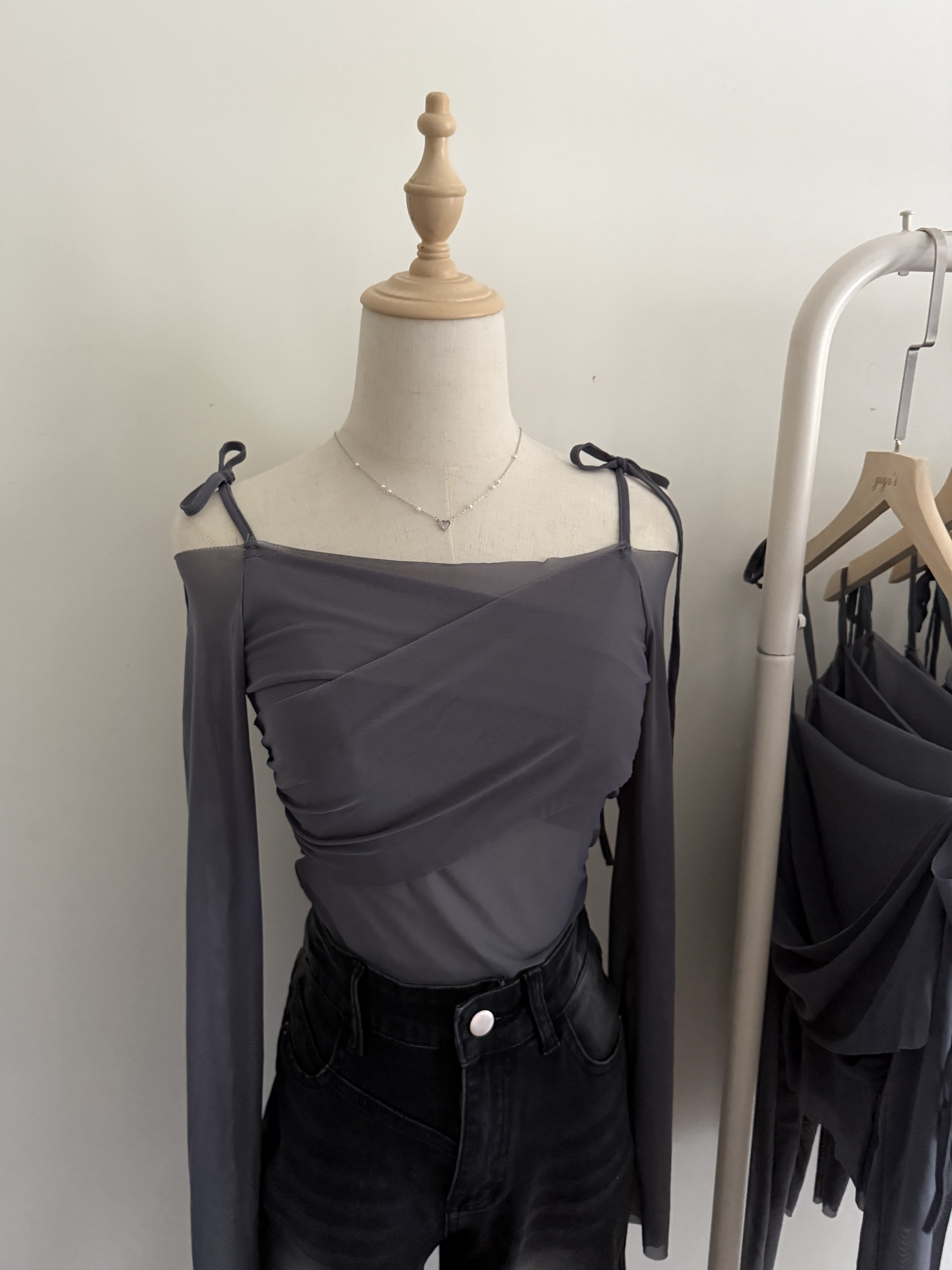 交叉剪裁+綁帶一字領很加分౨ৎ