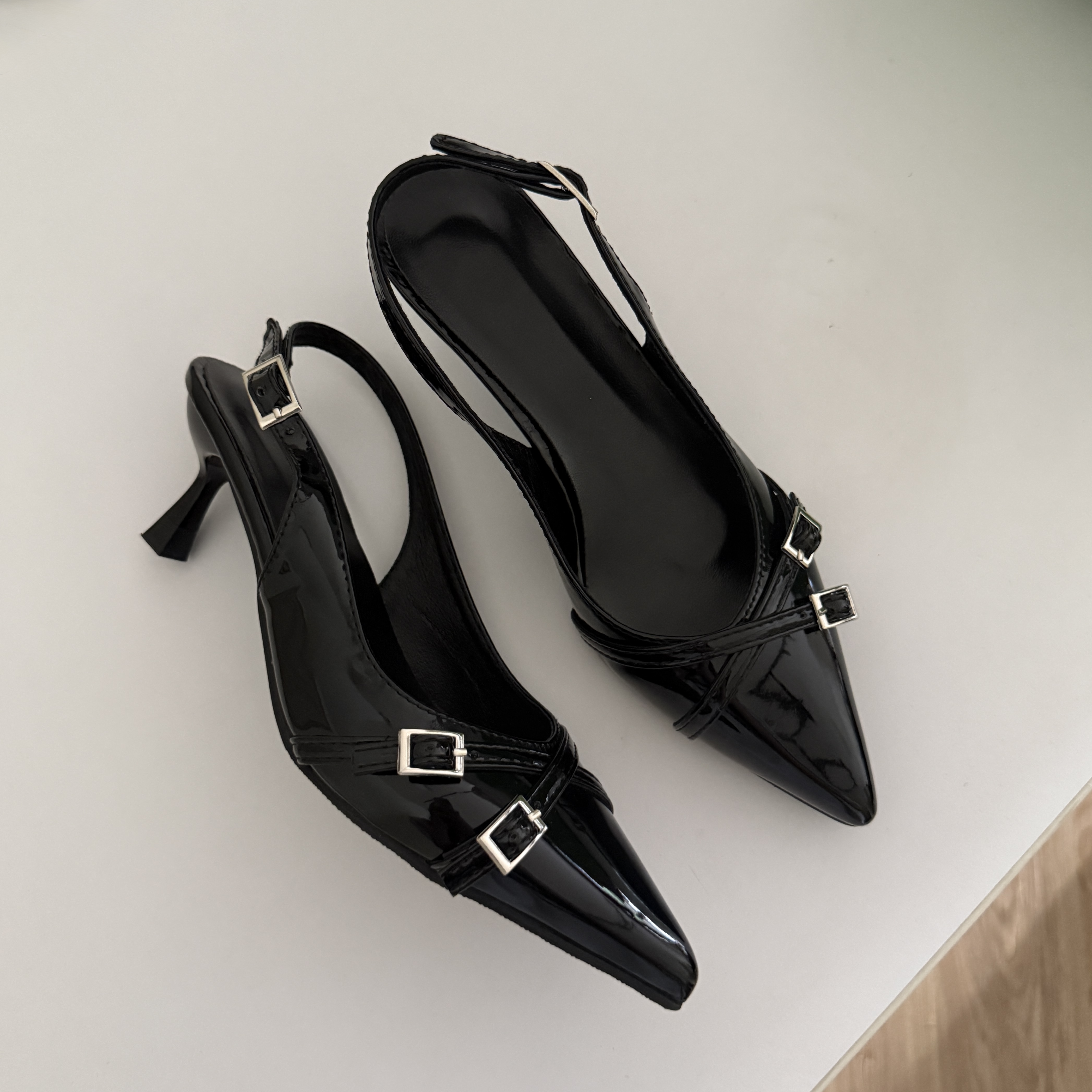 超好穿好走!! # 黑色皮帶釦尖頭鞋