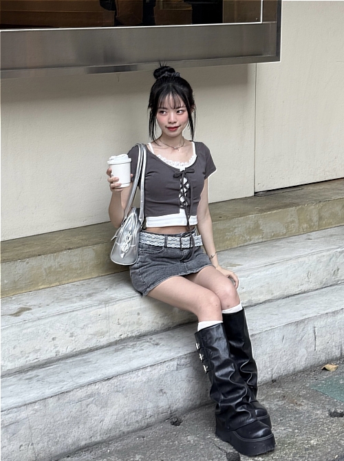 穿起來超瘦.ᐟ # 辣妹厚底皮革銀釦長靴