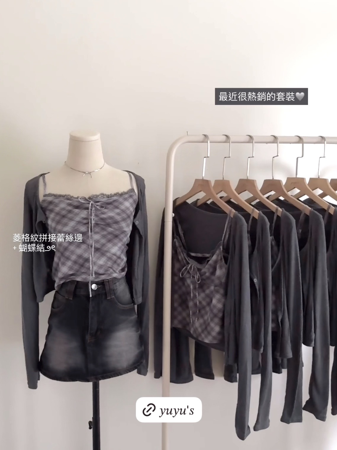 # 菱格紋拼接蝴蝶結小背心罩衫set
