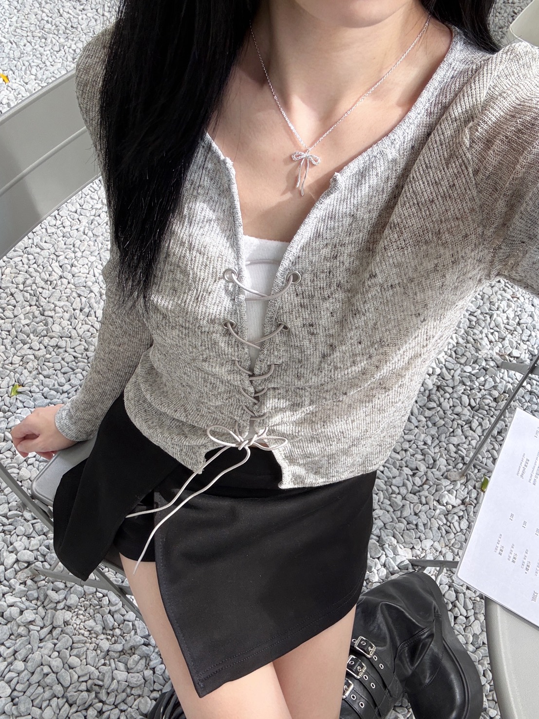 混灰感色調微透細針織+交叉綁帶౨ৎ