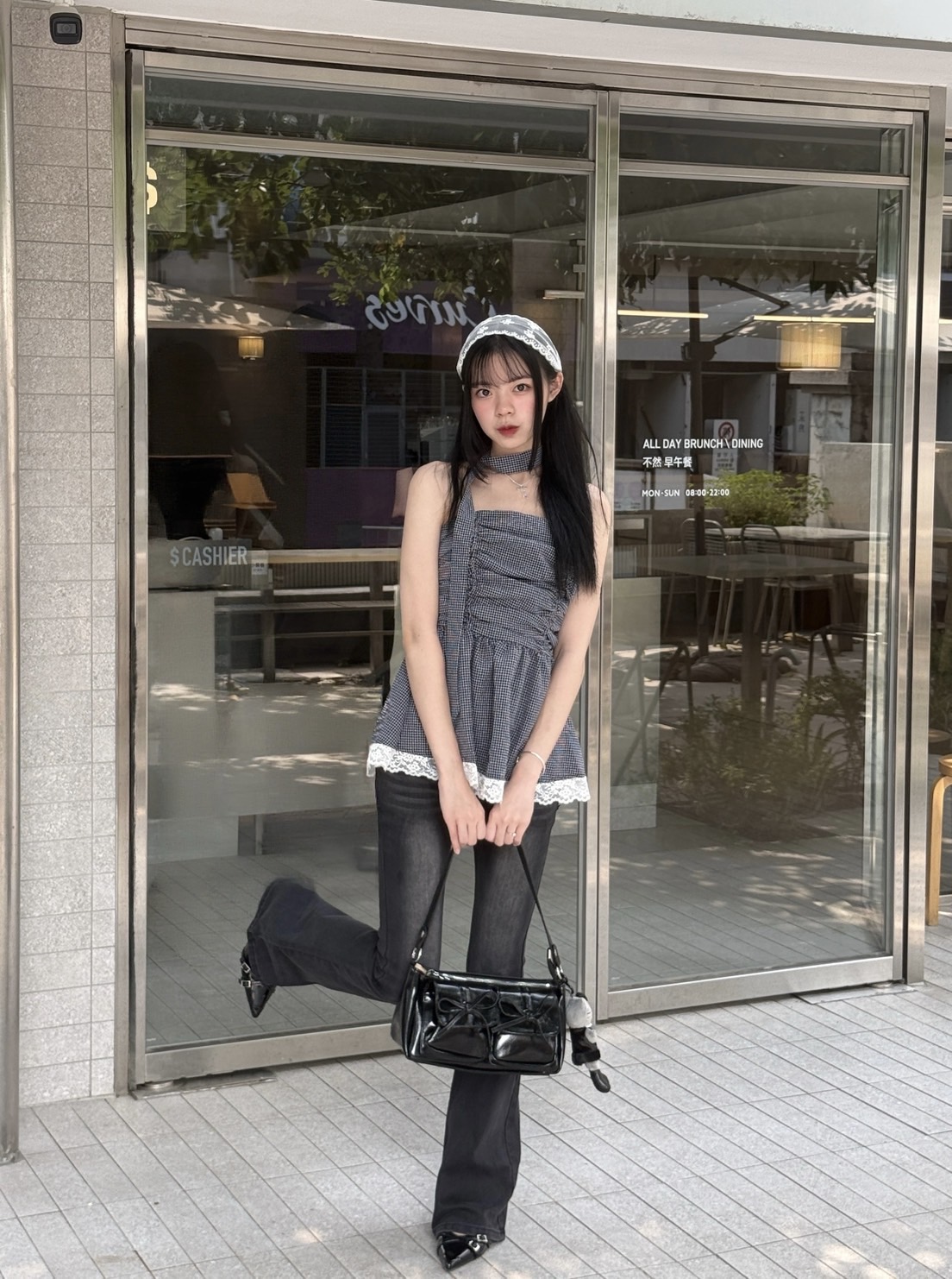 # 蝴蝶結皮革單肩包