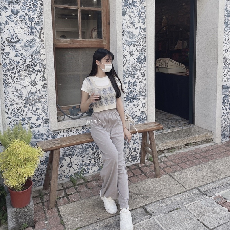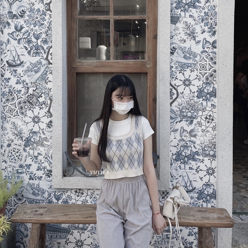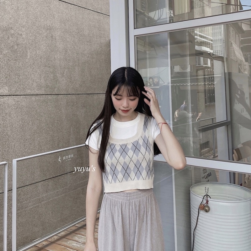 霧面的奶杏和奶藍拼接的菱紋 非常美呀!!!