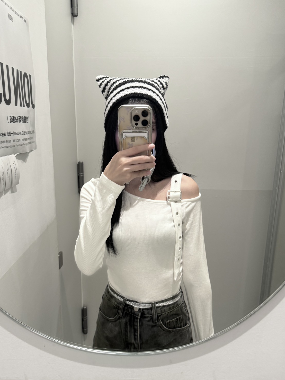 韓製 | 翻領縮腰綁帶條紋毛衣