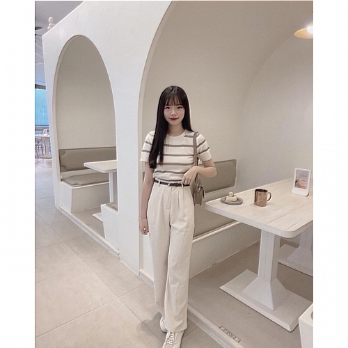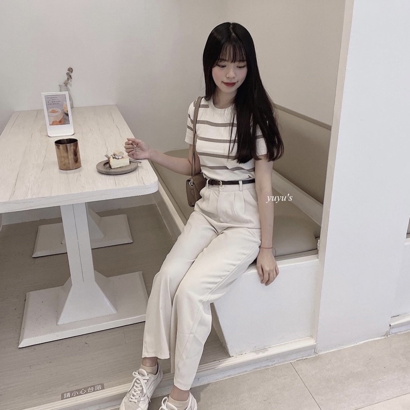 奶咖條紋搭上奶油色底 怎麼看都好溫柔