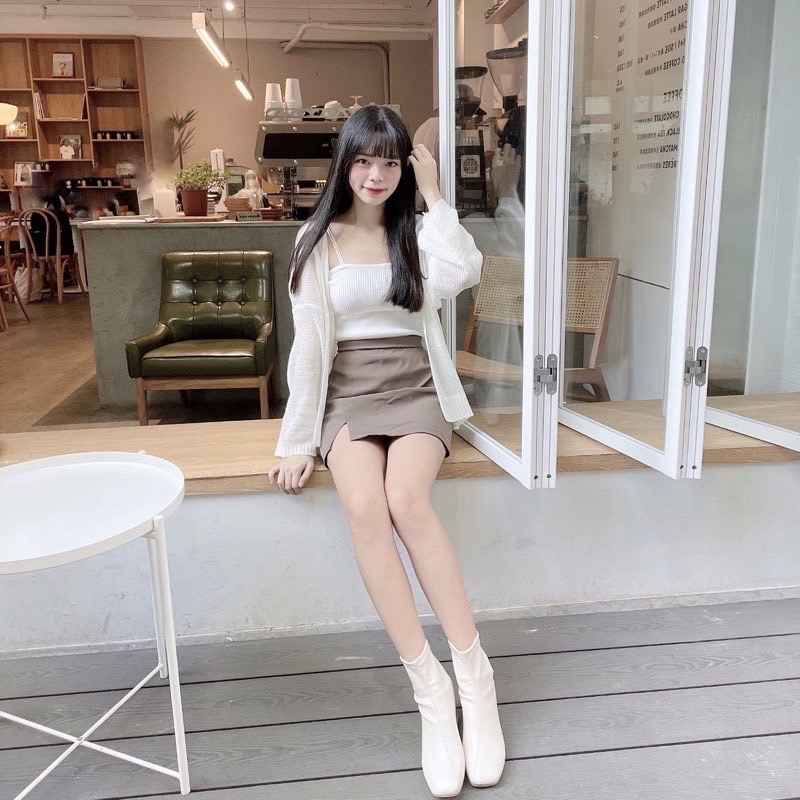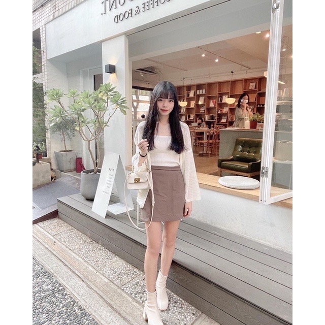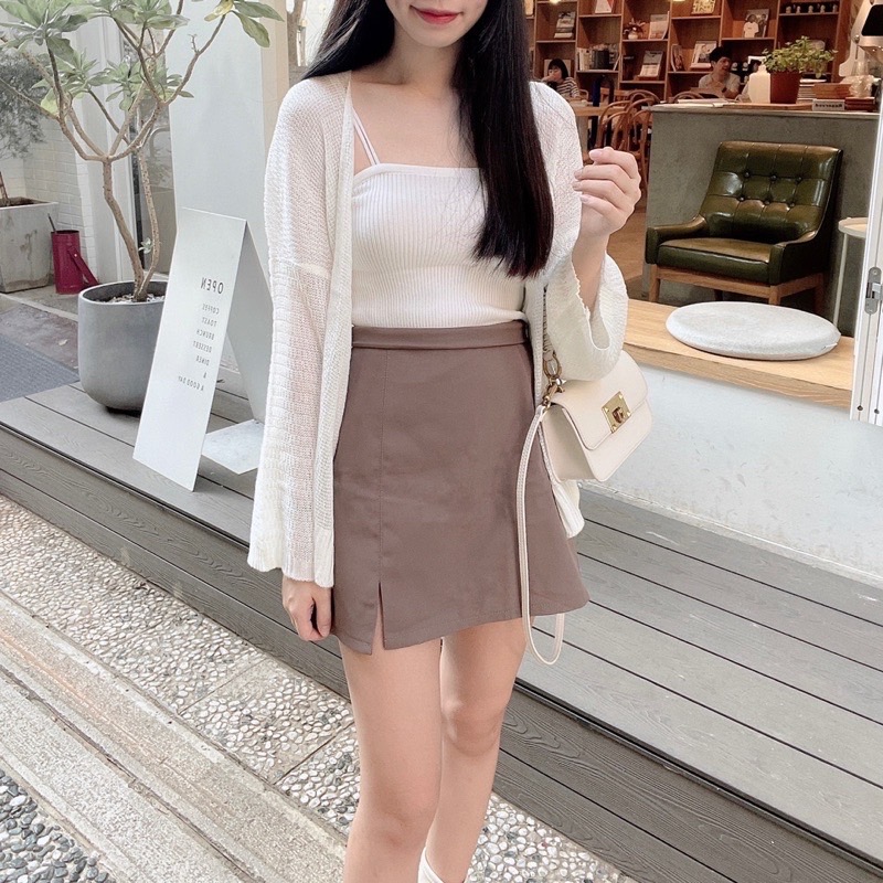 原本就很熱賣的黑色開衩短裙還出了新顏色 奶咖!完全是闆娘的菜~~~