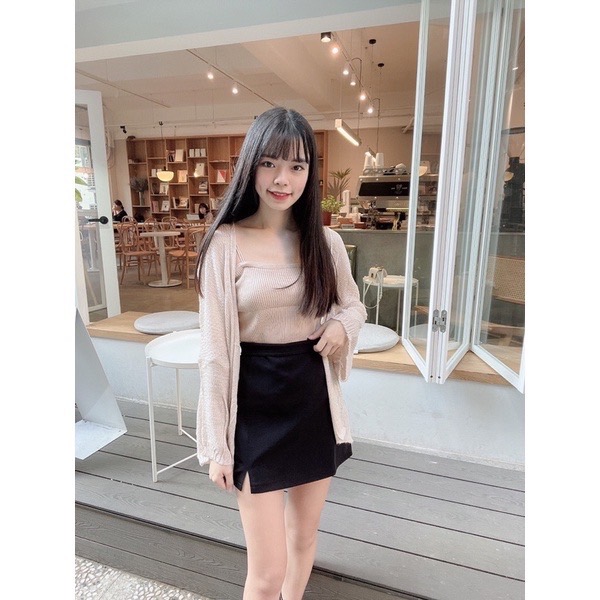 背心和外套材質都是舒服的針織 配上小開衩短裙真的超美