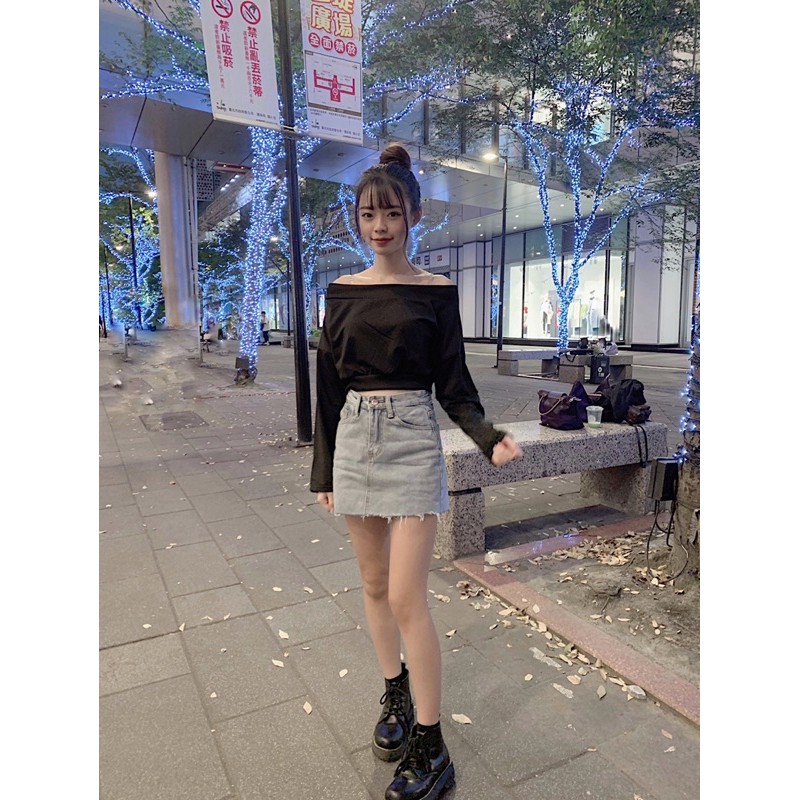 #版型偏小毛邊淺藍牛仔短裙